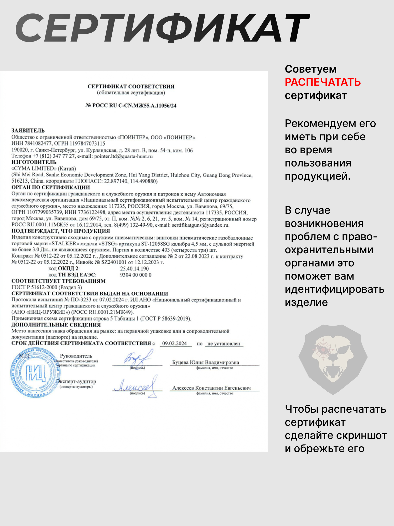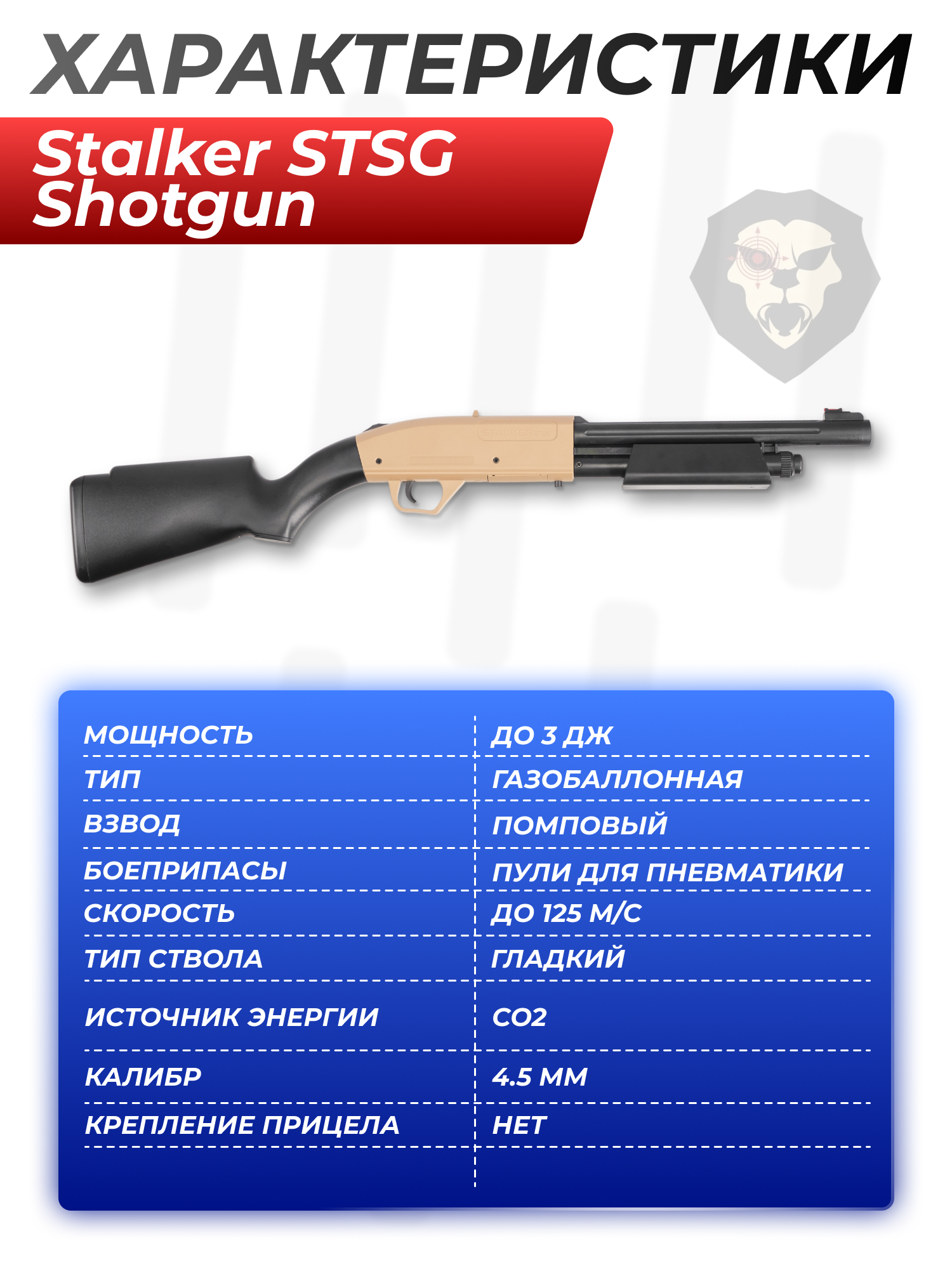Информация о товаре "Пневматическая винтовка Stalker STSG Shotgun 4.5 мм (CO2, дробовик, Remington 870)" носит ознакомительный характер, и не является публичной офертой, определяемой положениями Статьи 437 Гражданского кодекса Российской Федерации, характеристики, внешний вид, цвет и комплектация могут быть изменены производителем без уведомления.