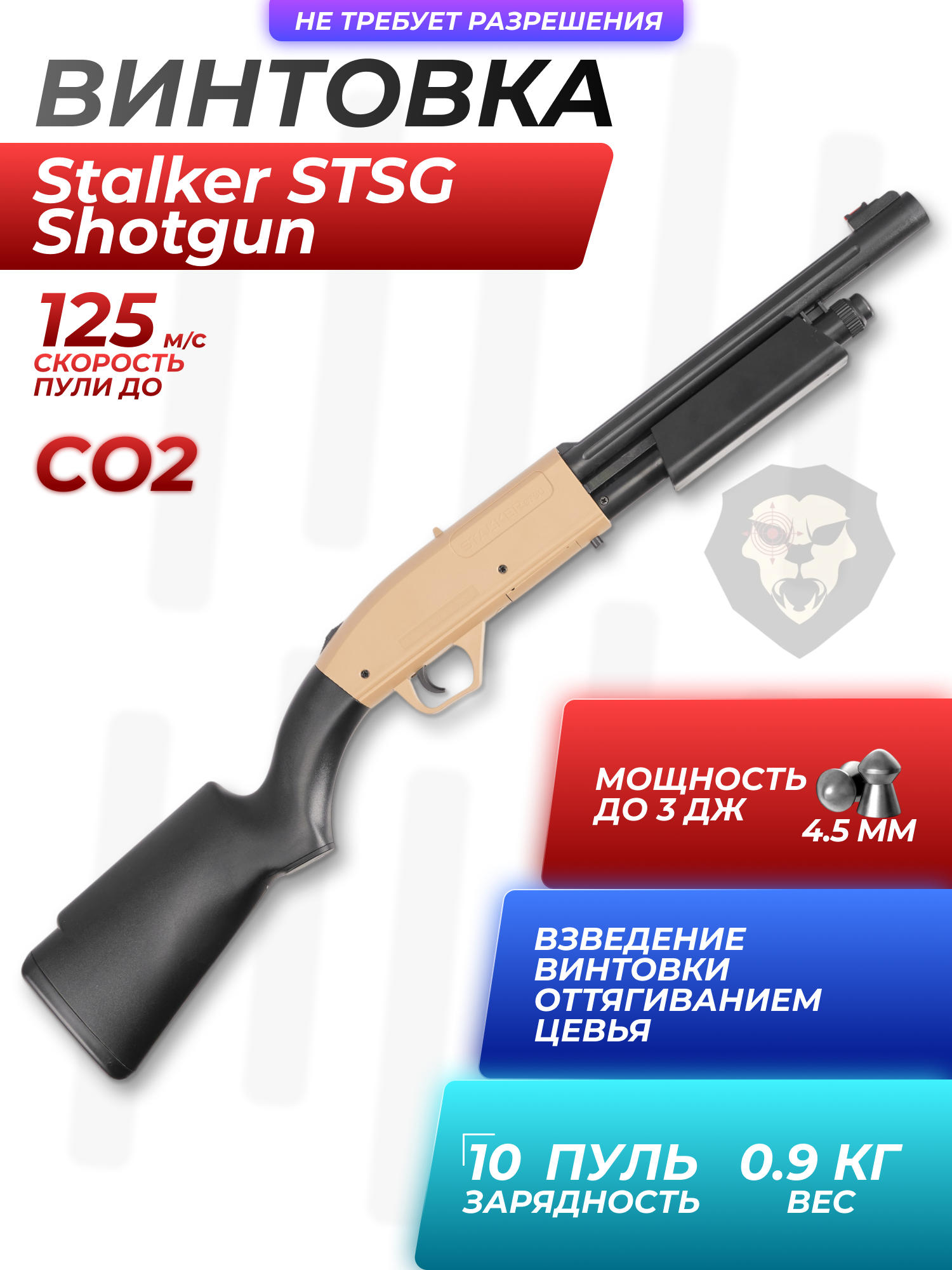 Пневматическая винтовка Stalker STSG Shotgun 4.5 мм (CO2, дробовик, Remington 870) купить в интернет-магазине Popadiv10.