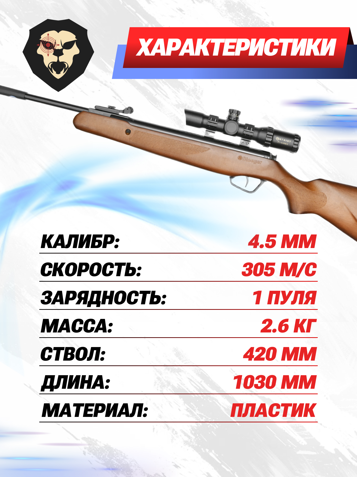 Информация о товаре "Пневматическая винтовка Stoeger X20 Wood 4.5 мм" носит ознакомительный характер, и не является публичной офертой, определяемой положениями Статьи 437 Гражданского кодекса Российской Федерации, характеристики, внешний вид, цвет и комплектация могут быть изменены производителем без уведомления.