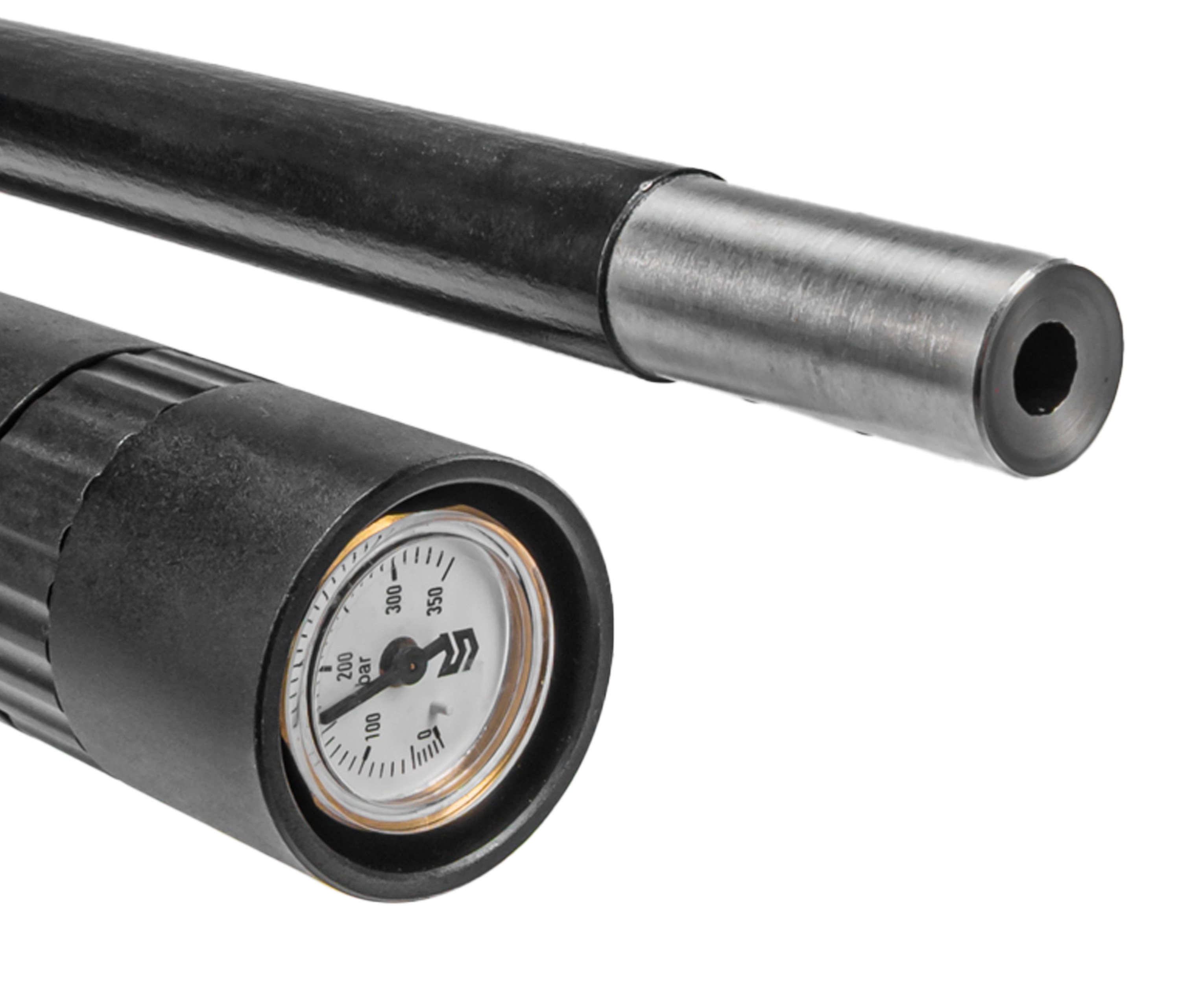 Чтобы разогнать пулю, расходуется сжатый воздух, находящийся под давлением до 250 Бар. Газ предварительно нагнетается внутрь подствольного резервуара при помощи компрессоров ВД. Для совместимости насосов набор включает специальный штуцер-переходник, который крепится на шланг оборудования.