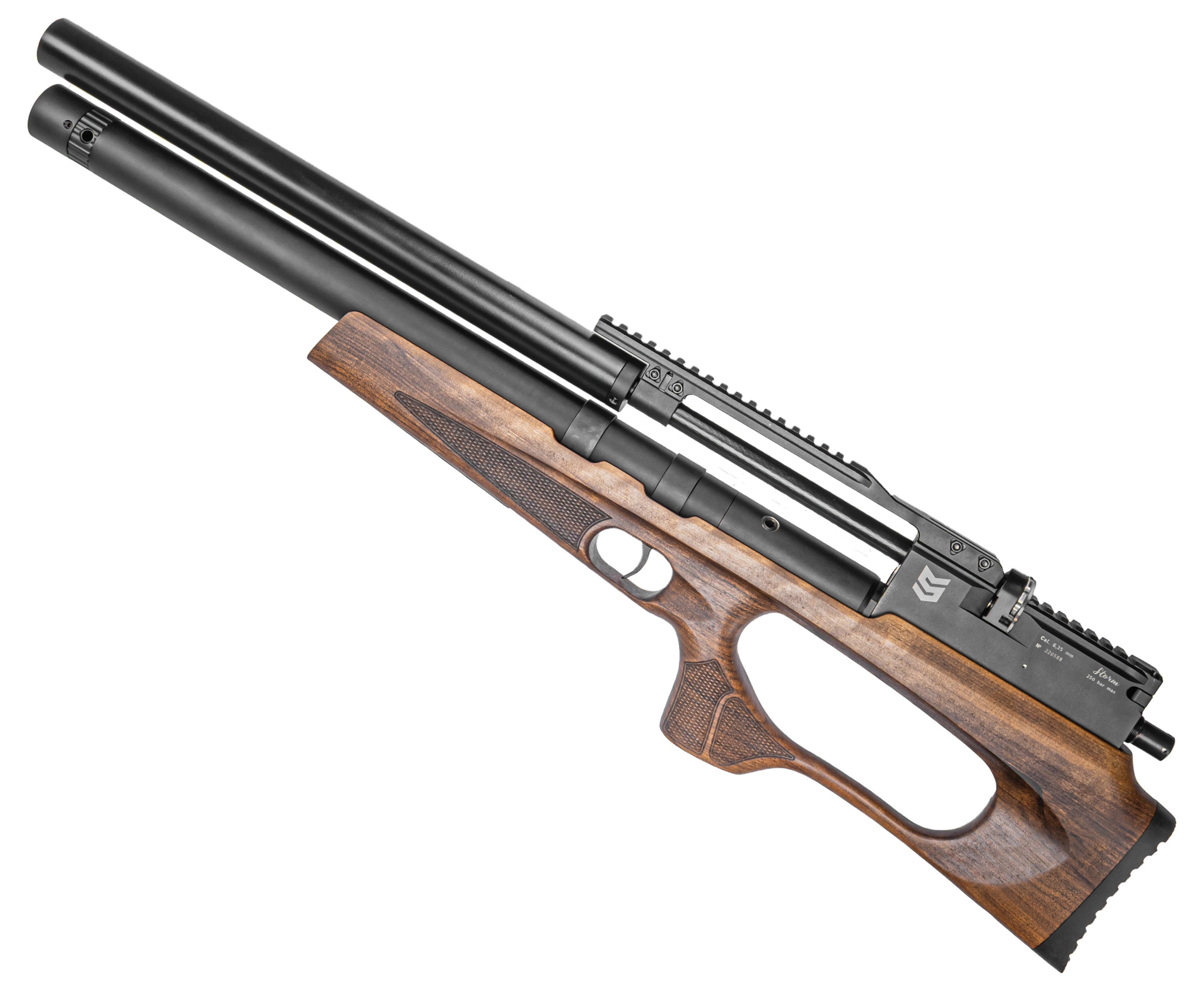 Ассортимент включает решения как в прямотоке, так и с предустановленным редуктором, который позволяет тонко настроить пневматику для собственных нужд. Данный модуль заявлен в рассматриваемой винтовке Storm Goliath Sport и служит для регулировки давления воздуха, пропускаемого из ресивера в ствол. Сам баллон линейного типа рассчитан на максимальную накачку в 250 Бар.