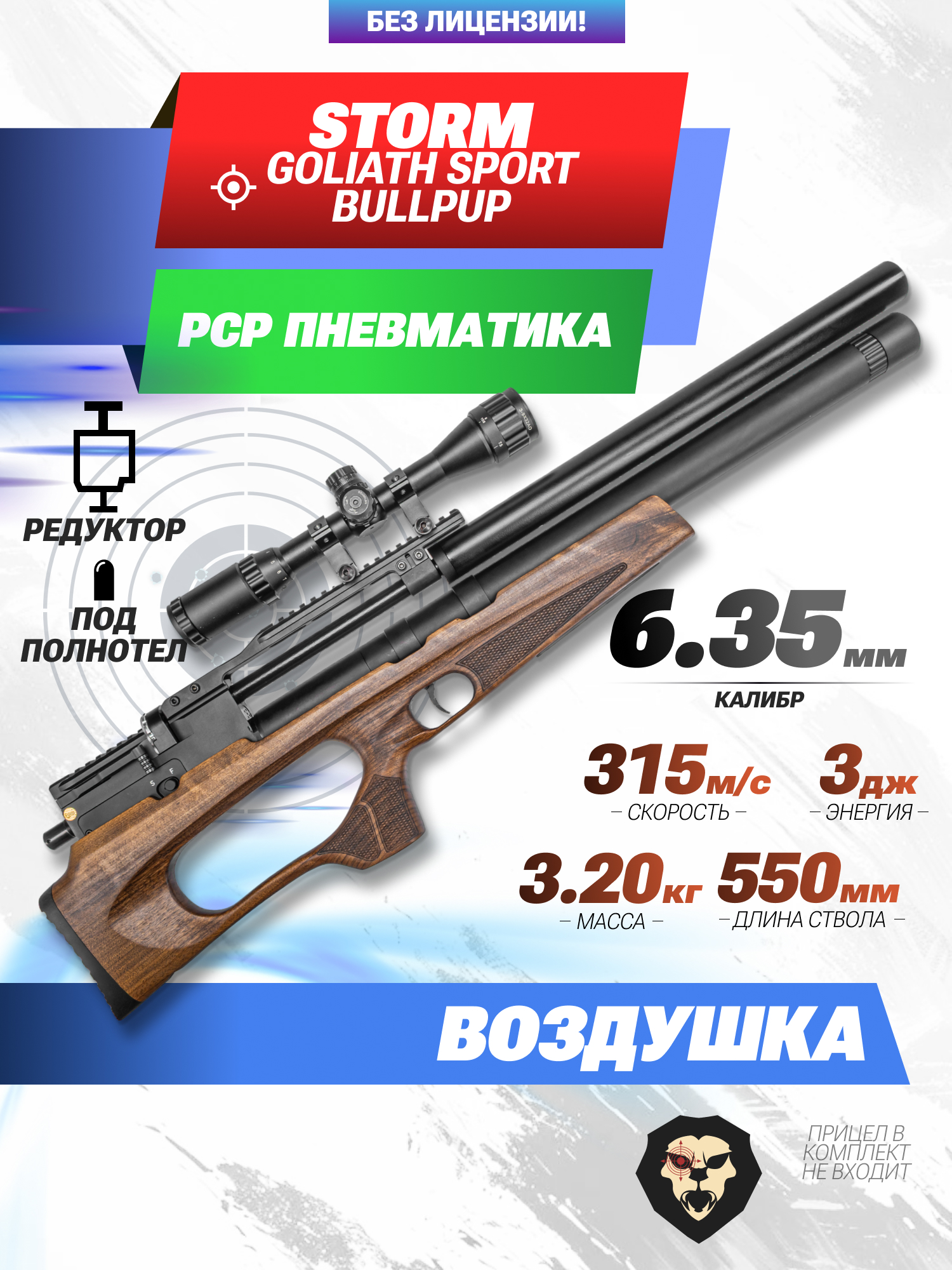 Пневматическая винтовка Storm Goliath Sport Bullpup 6.35 мм (полнотел, РСР, редуктор, 550 мм) купить в интернет-магазине Popadiv10.