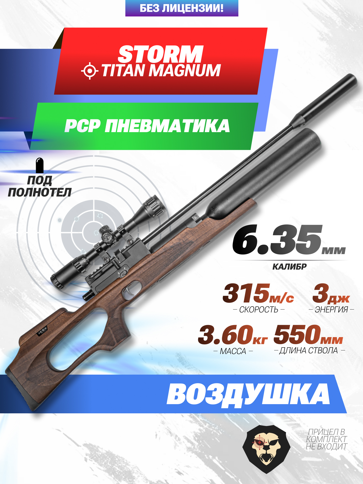 Пневматическая винтовка Storm Titan Magnum 6.35 мм (550 мм, ПСП, полнотел, колба) купить в интернет-магазине Popadiv10.