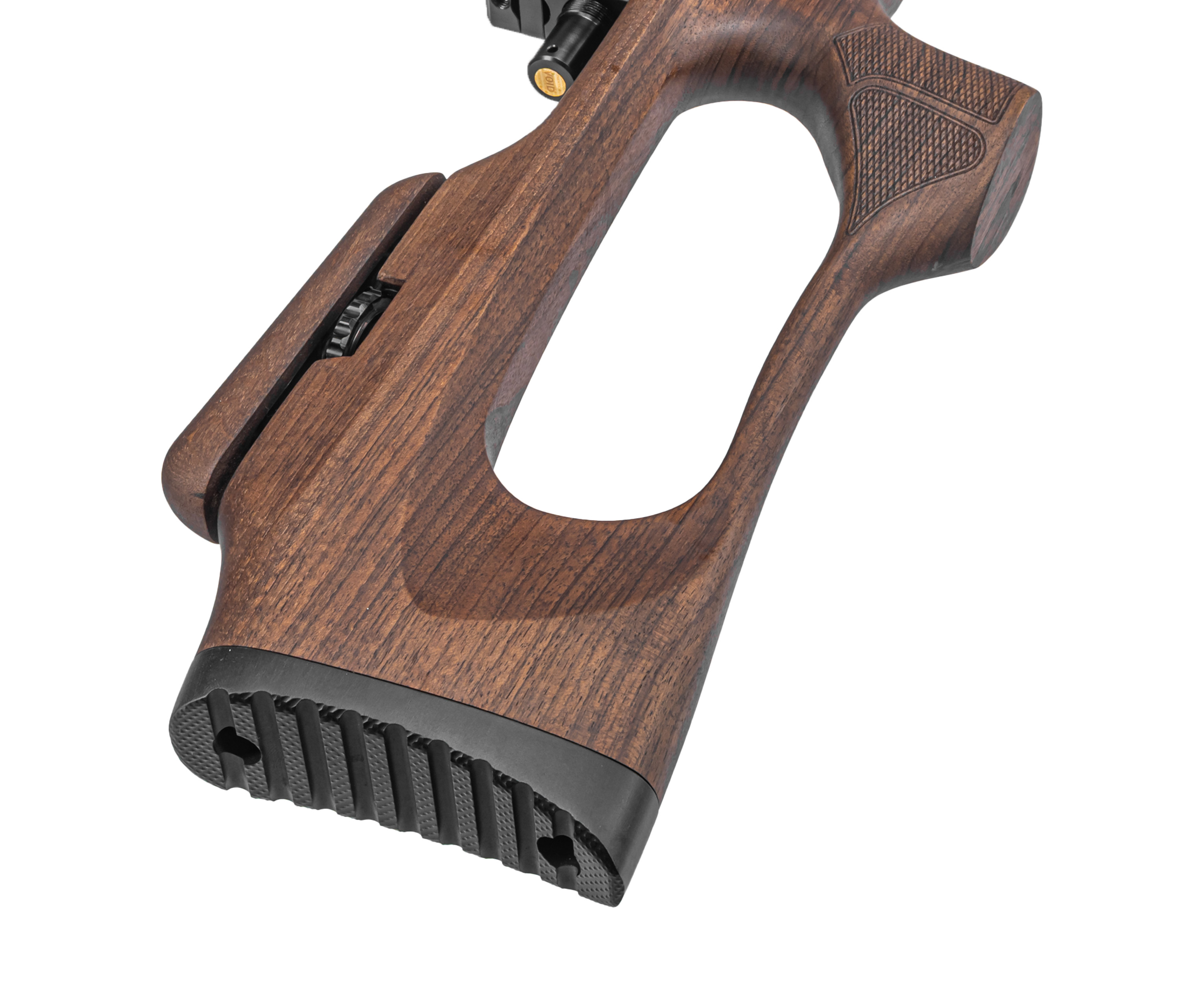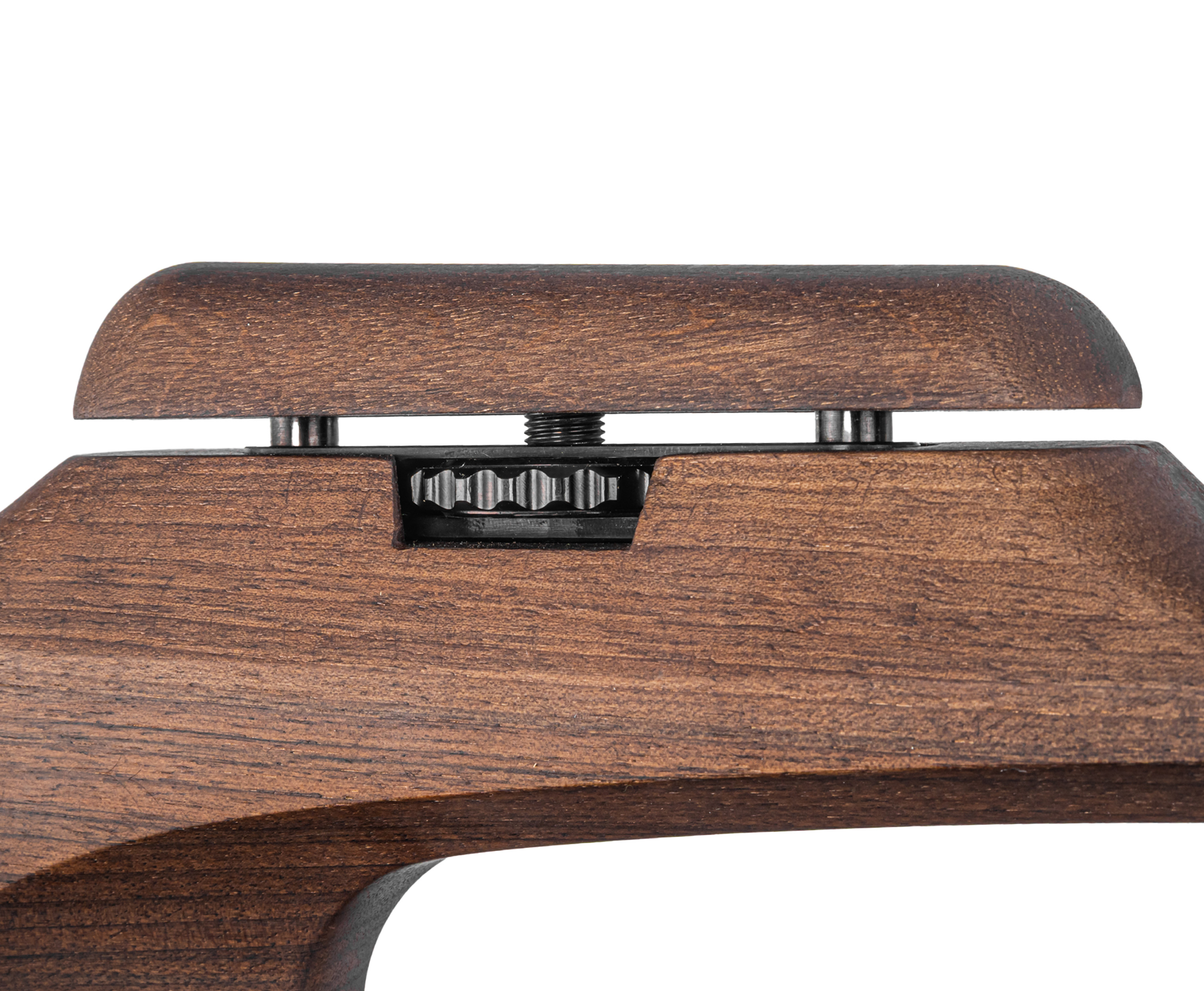 Ложа винтовки классическая, выполненная из дерева - в конструкции нашлось место не только для регулируемого подщечника, но и настраиваемого затыльника приклада. Несмотря на ощутимое техническое оснащение масса изделия Шторм осталась в средних рамках - 4.27 килограмма. Следовательно, оружие располагает не только к стрельбе со стола, но и к ходовому использованию.