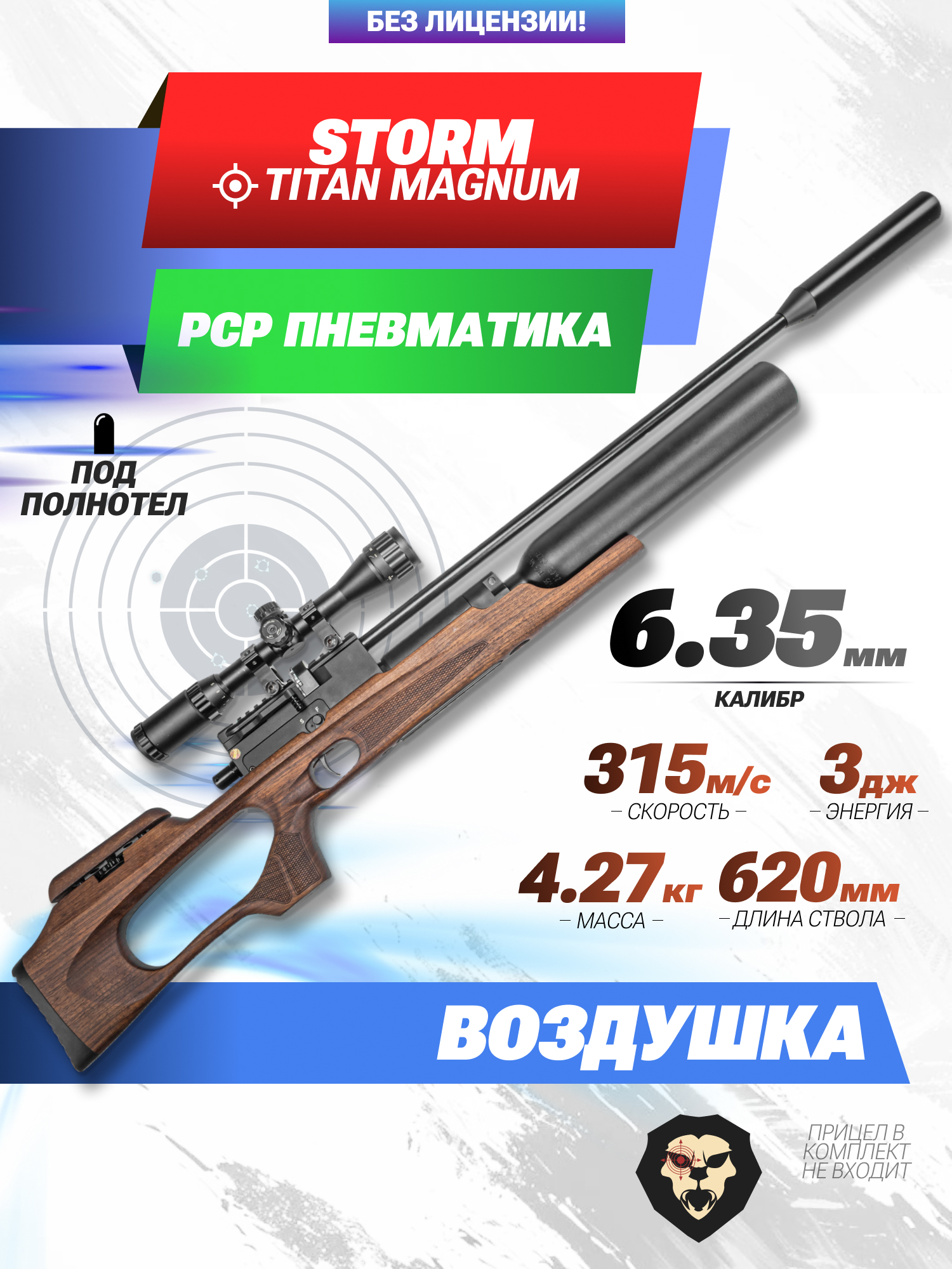 Пневматическая винтовка Storm Titan Magnum 6.35 мм (ПЦП, полнотел, колба, 620 мм) купить в интернет-магазине Popadiv10.