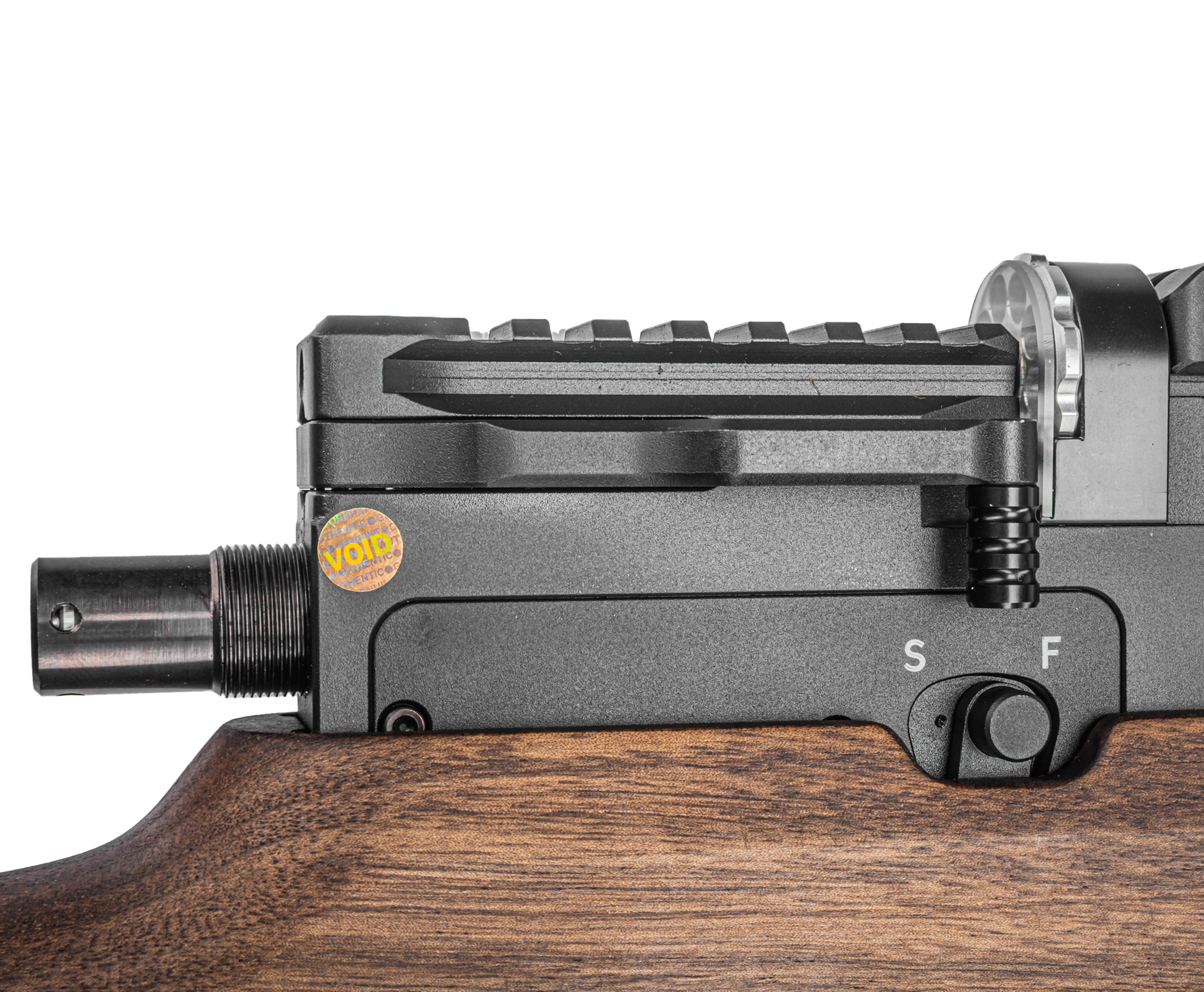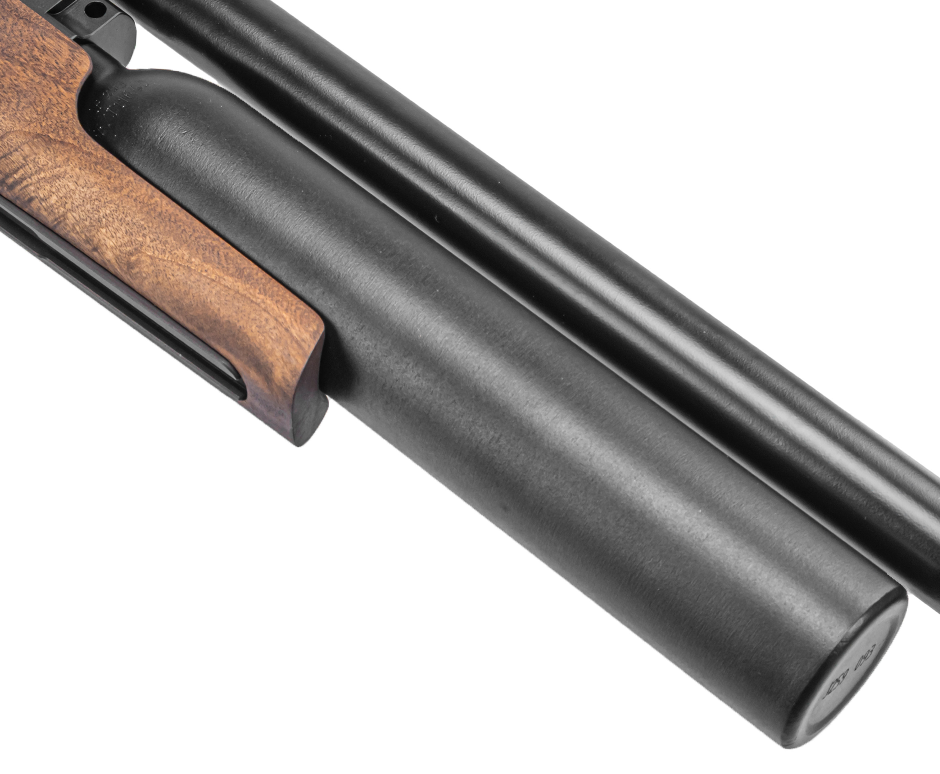 Помимо более емкого ресивера Титан выделяется наличием полигонального бланка без дульного сужения - «чока». Благодаря этому к стрельбе допускаются полнотелые пули .25 калибра. Сам ствол длиной 55 сантиметров изготовлен из качественной инструментальной стали и совмещен с модератором звука, который эффективно приглушает громкость хлопка.