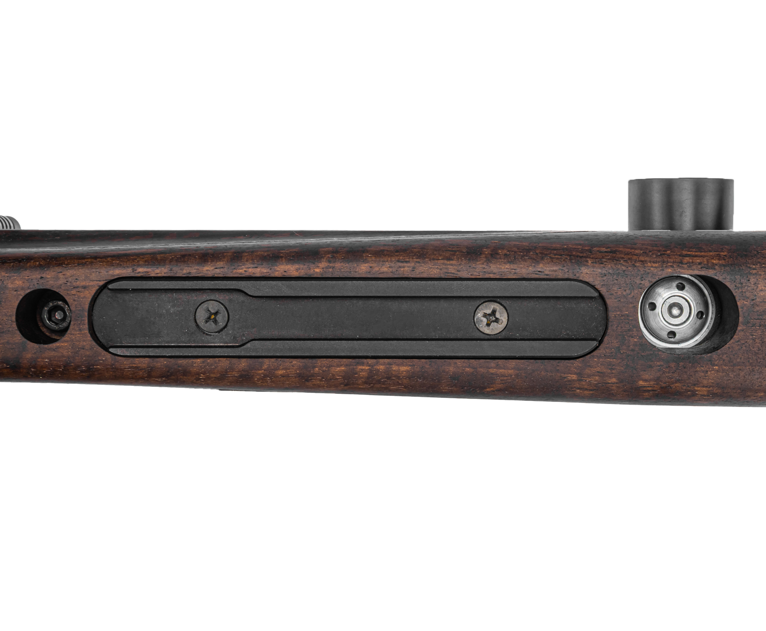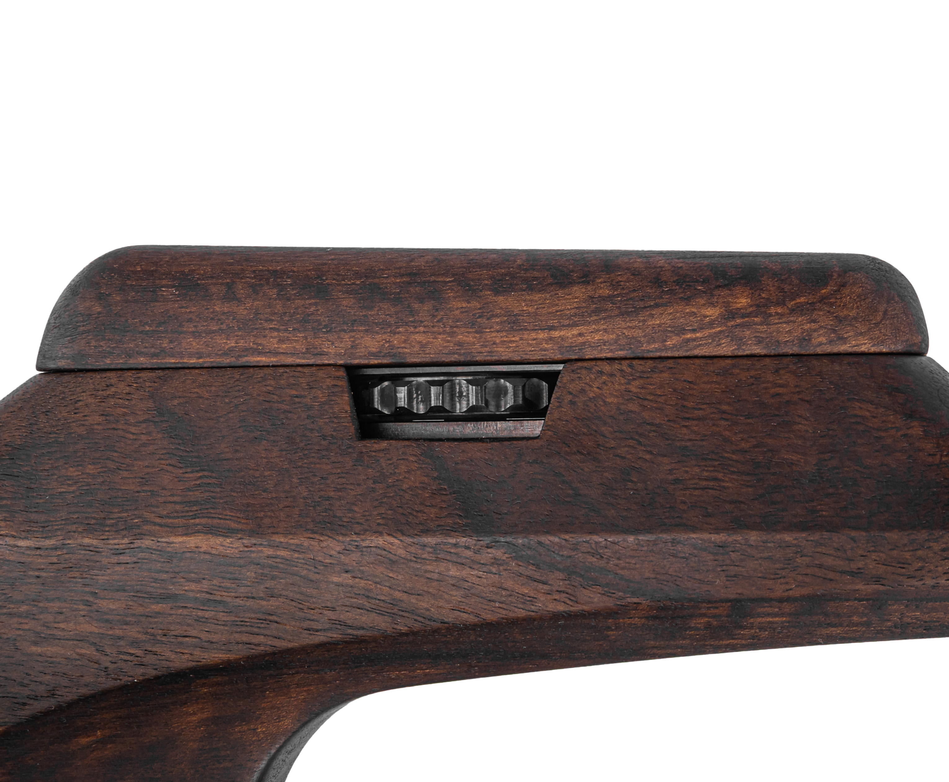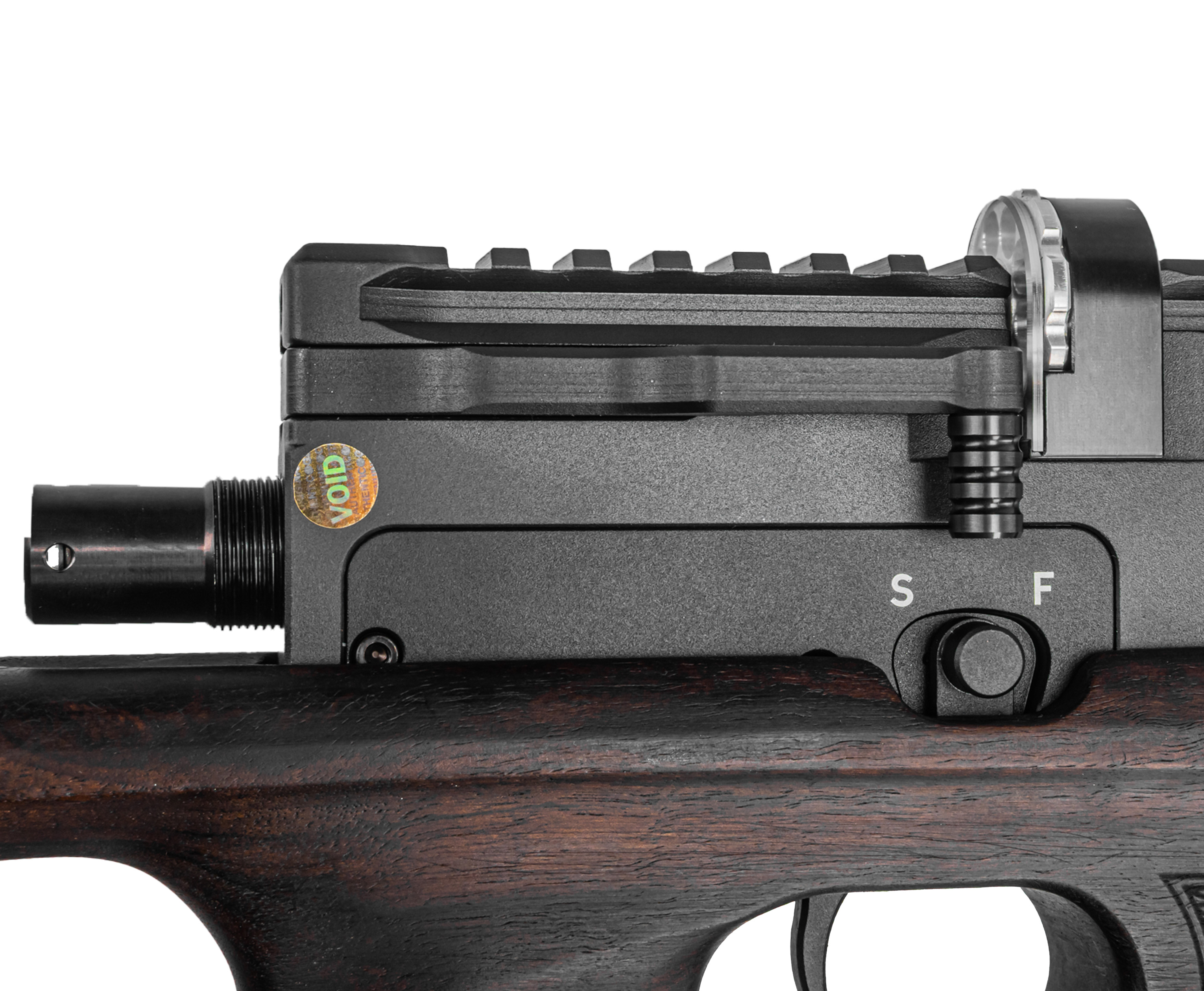 Степень накачки можно оперативно отследить при помощи шкалы бокового манометра, наклонив винтовку. Вдобавок модификация Титан Спорт оснащается редуктором - схема газораспределения, включающая указанный узел, подразумевает гибкую настройку в зависимости от предпочтений владельца. Так регулировкой давления пропускаемого в ствол воздуха достигается предсказуемая эксплуатация оружия, что положительно отражается на повторяемости выстрела.