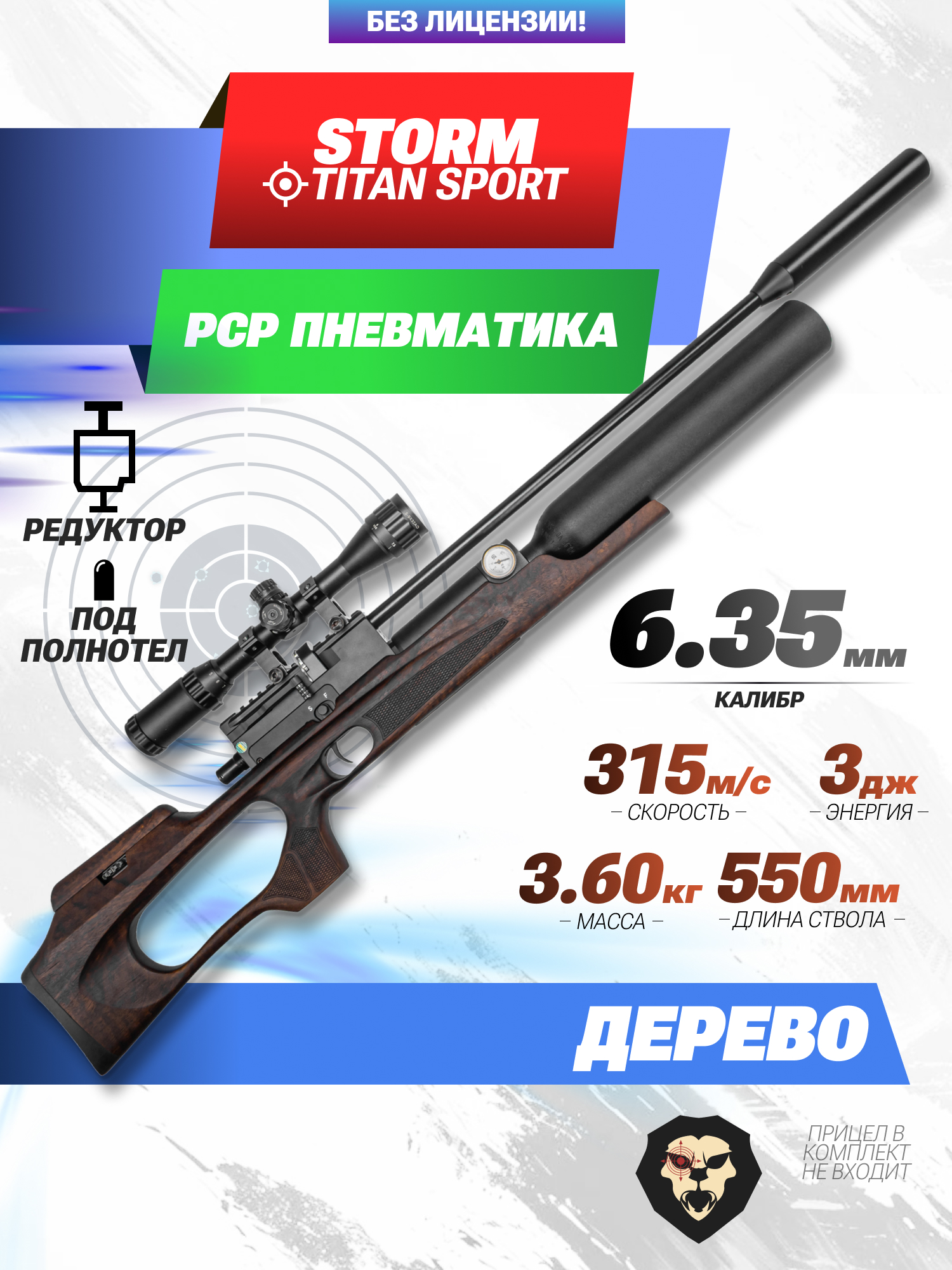 Пневматическая винтовка Storm Titan Sport 6.35 мм (РСР, 550 мм, под полнотел, редуктор, колба) купить в интернет-магазине Popadiv10.