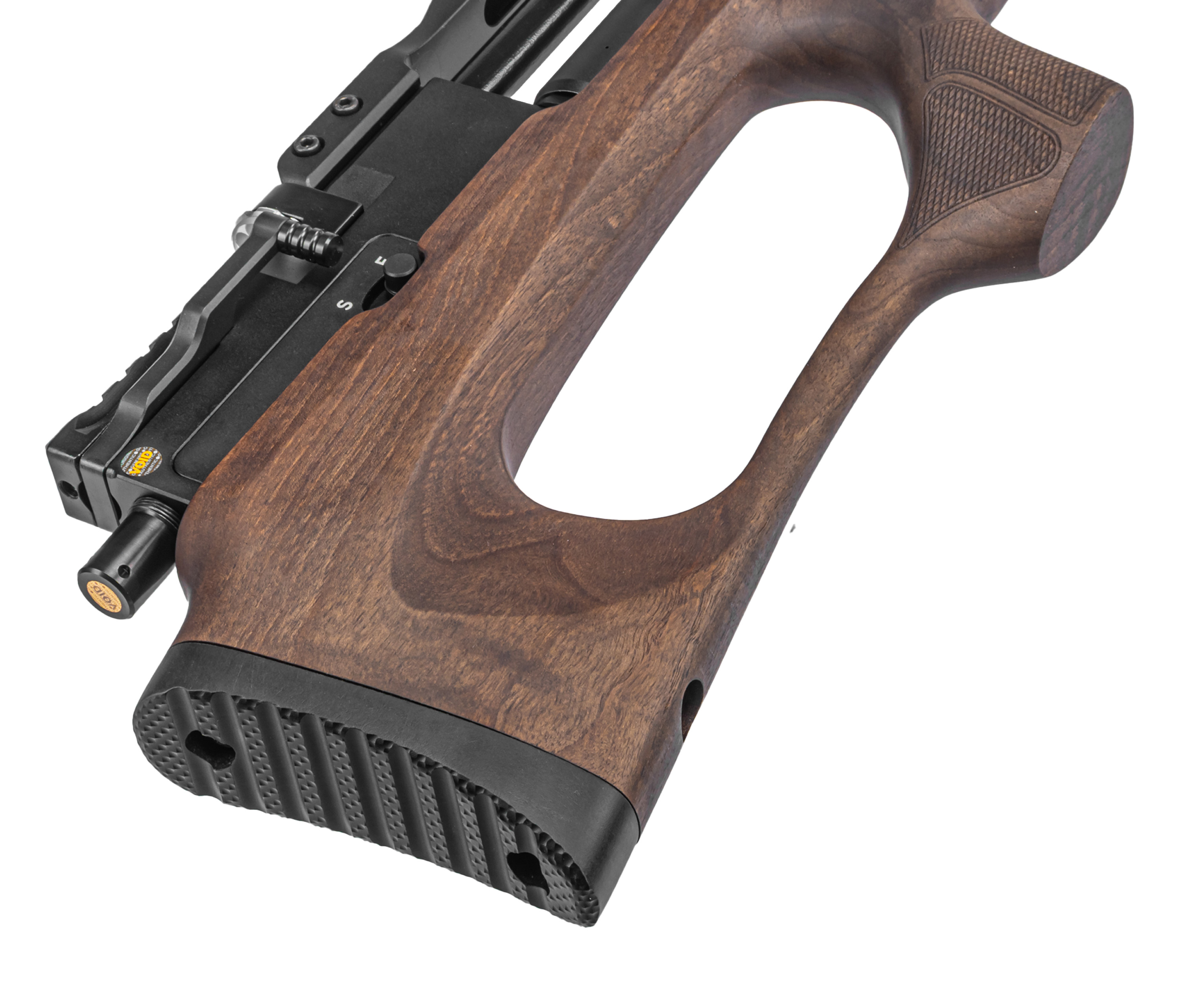 В исполнении Sport винтовка характеризуется наличием редуктора. Модуль, предустановленный с завода, открывает доступ к индивидуальной настройки пропускной способности. Стрелок сможет под себя выставить желаемое давление воздуха, попадаемого в ствол, что благоприятно сказывается на повторяемости выстрела.
