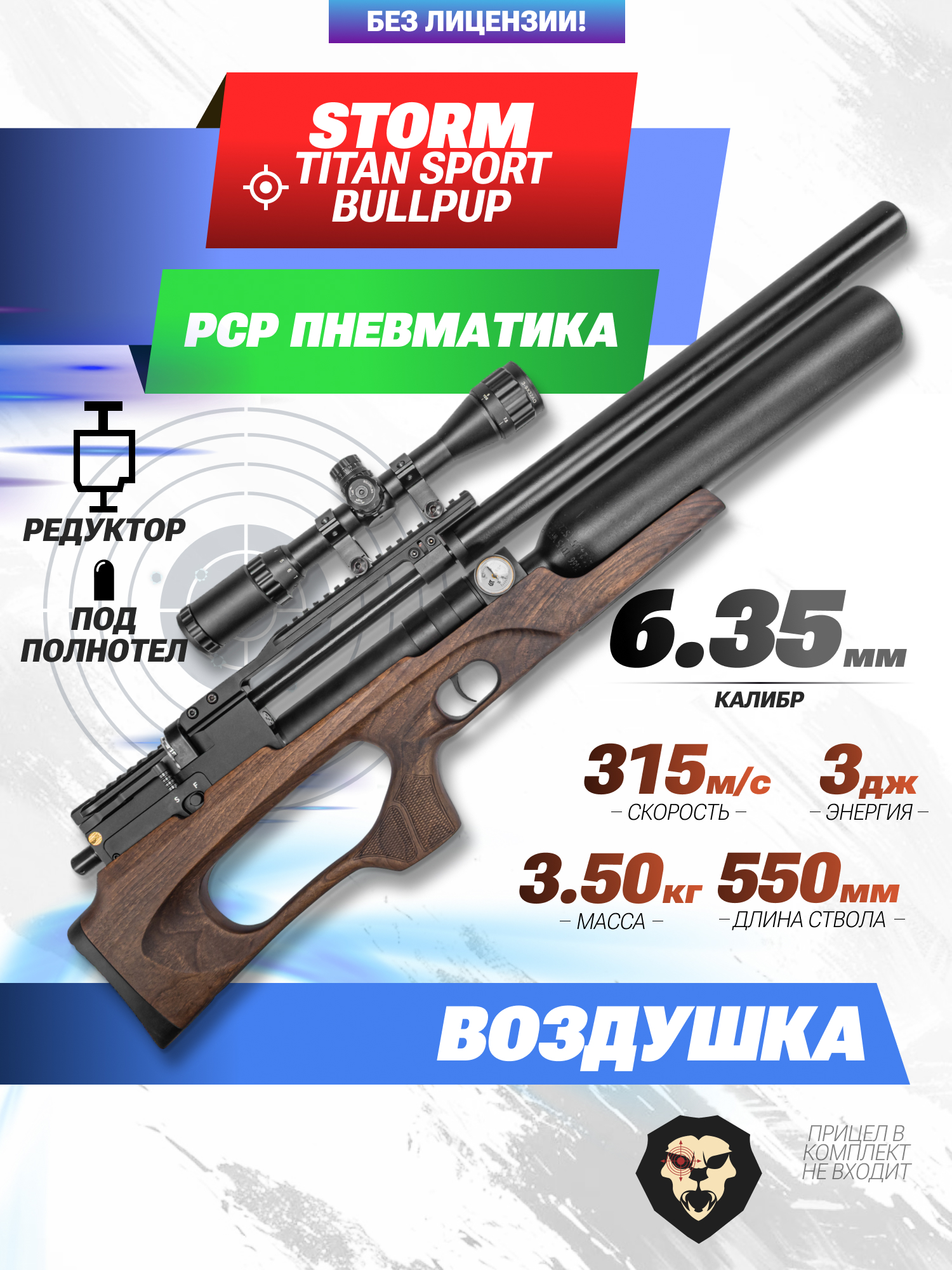 Пневматическая винтовка Storm Titan Sport Bullpup 6.35 мм (550 мм, колба, РСР, редуктор, полнотел) купить в интернет-магазине Popadiv10.