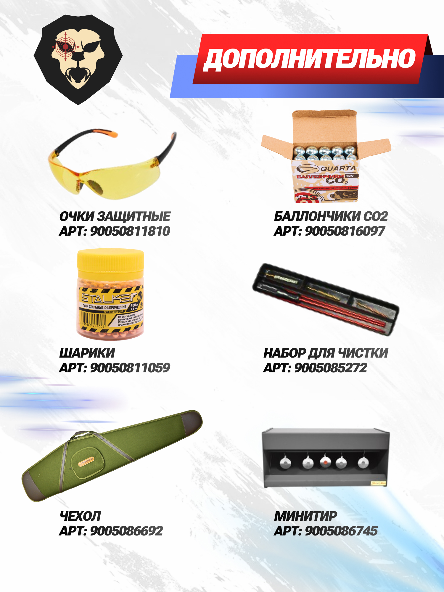 | Источник энергии | Газовый баллончик CO2 12 грамм, 2 шт |