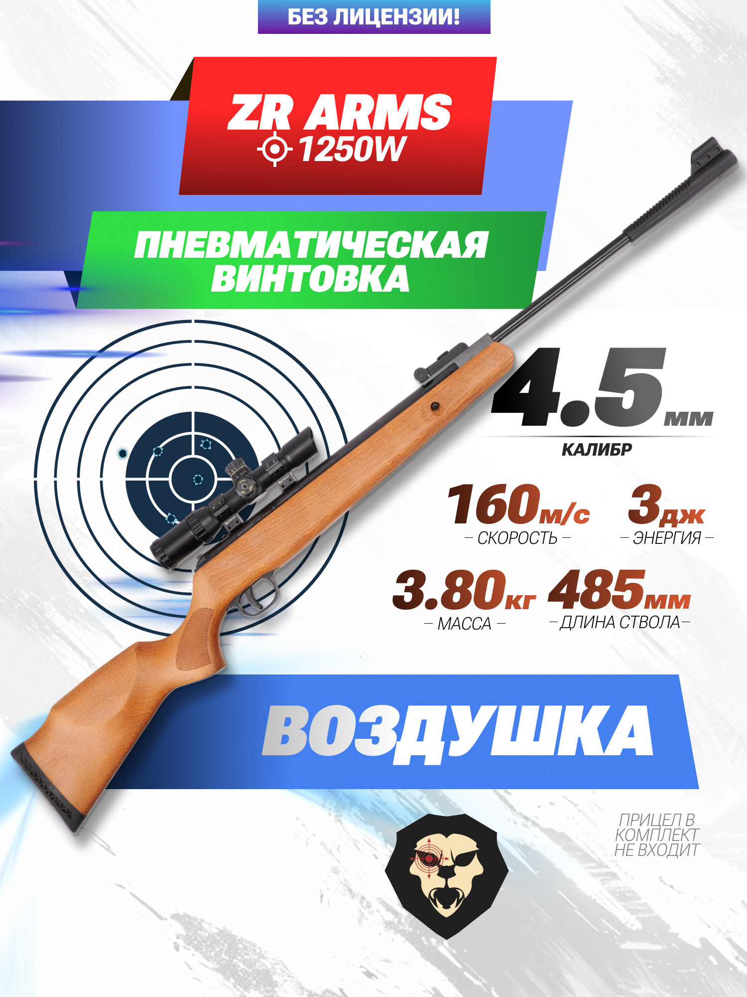 Пневматическая винтовка ZR Arms 1250W 4.5 мм (переломка, бук, 3 Дж) купить в интернет-магазине Popadiv10.