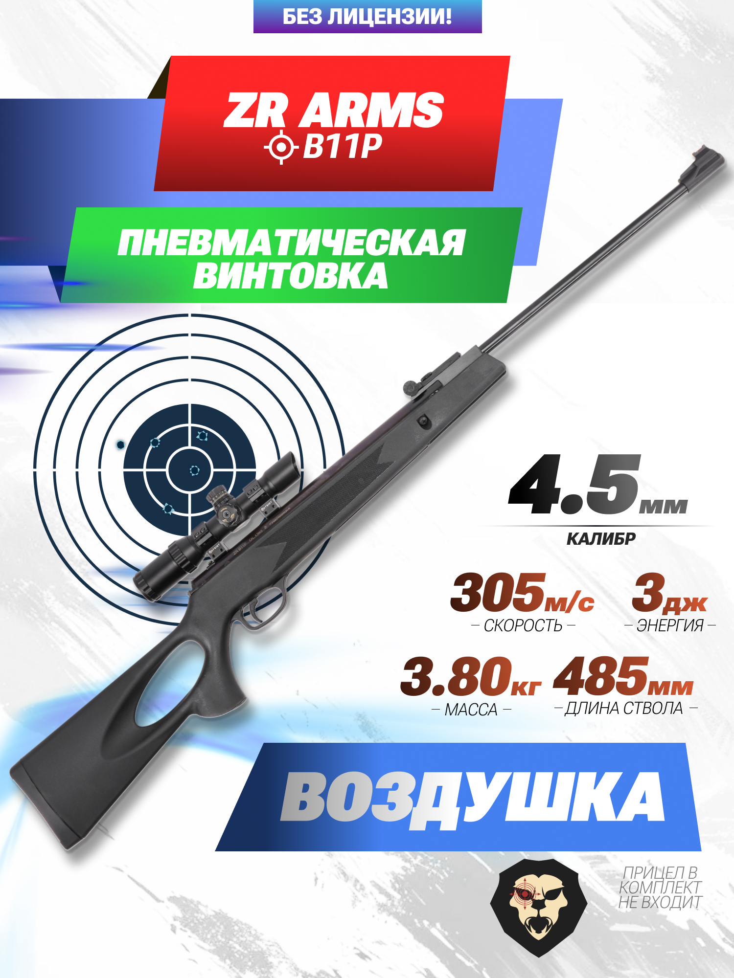 Пневматическая винтовка ZR Arms B11P 4.5 мм (3 Дж, пластик, переломка) купить в интернет-магазине Popadiv10.