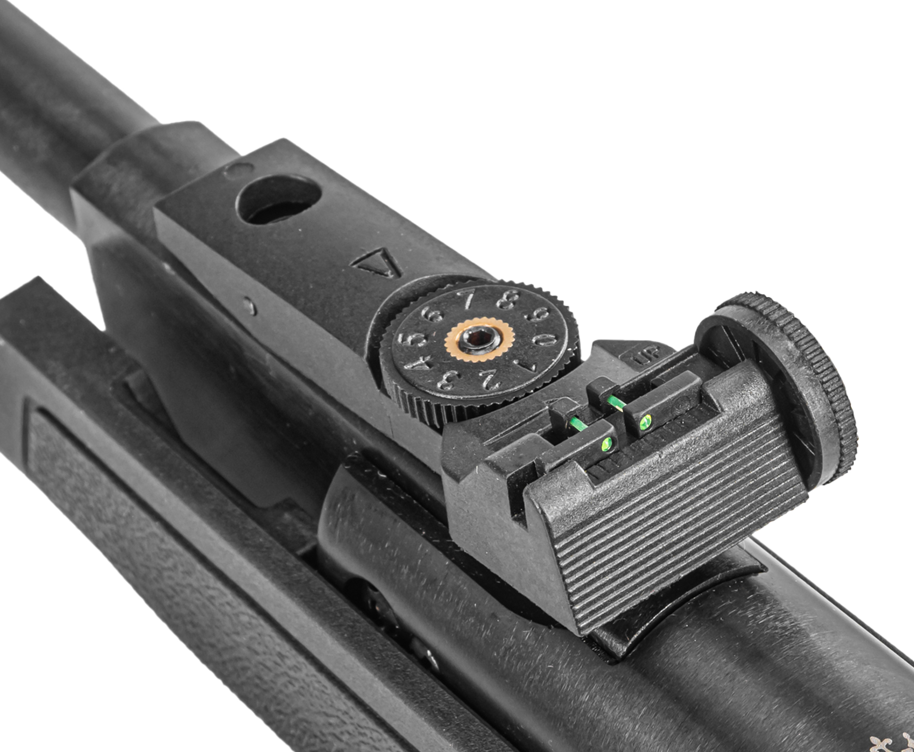Заводское исполнение винтовки предусматривает наличие привычных для большинства стрелков прицельных приспособлений в виде настраиваемого целика и фибероптической мушки, дающих поражать цели на малом отдалении. Опционально, при необходимости работы с мишенями на дистанции, на пневматику устанавливается оптический прицел, монтирующийся при помощи соответствующих колец и кронштейнов на направляющую планку «Ласточкин Хвост» с шириной рельсы в 11 миллиметров.