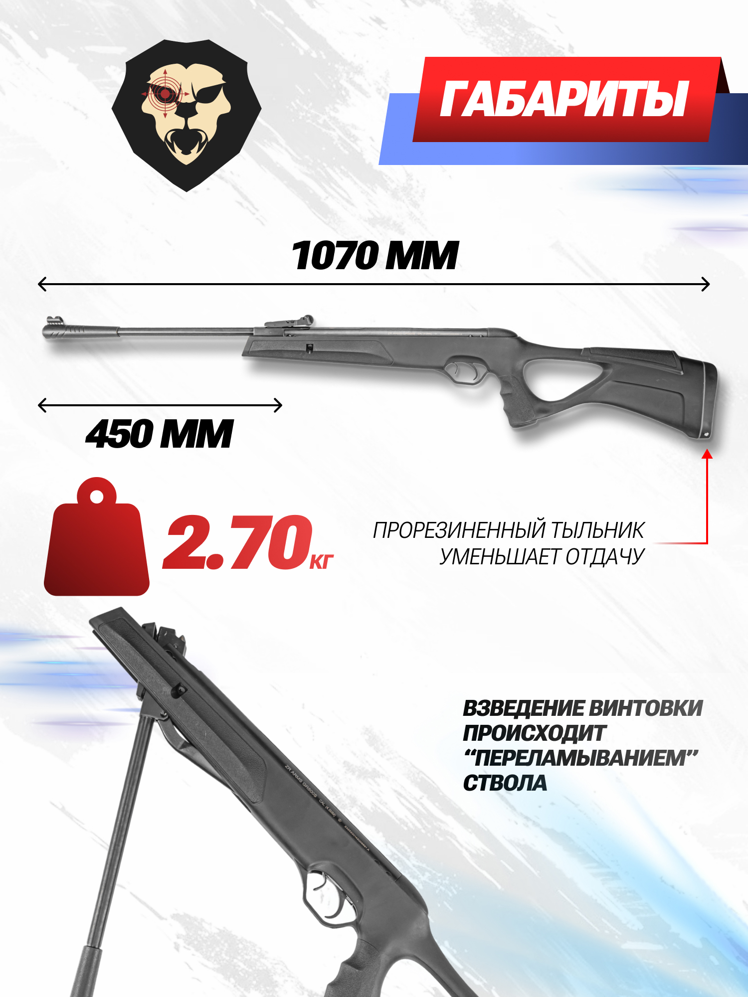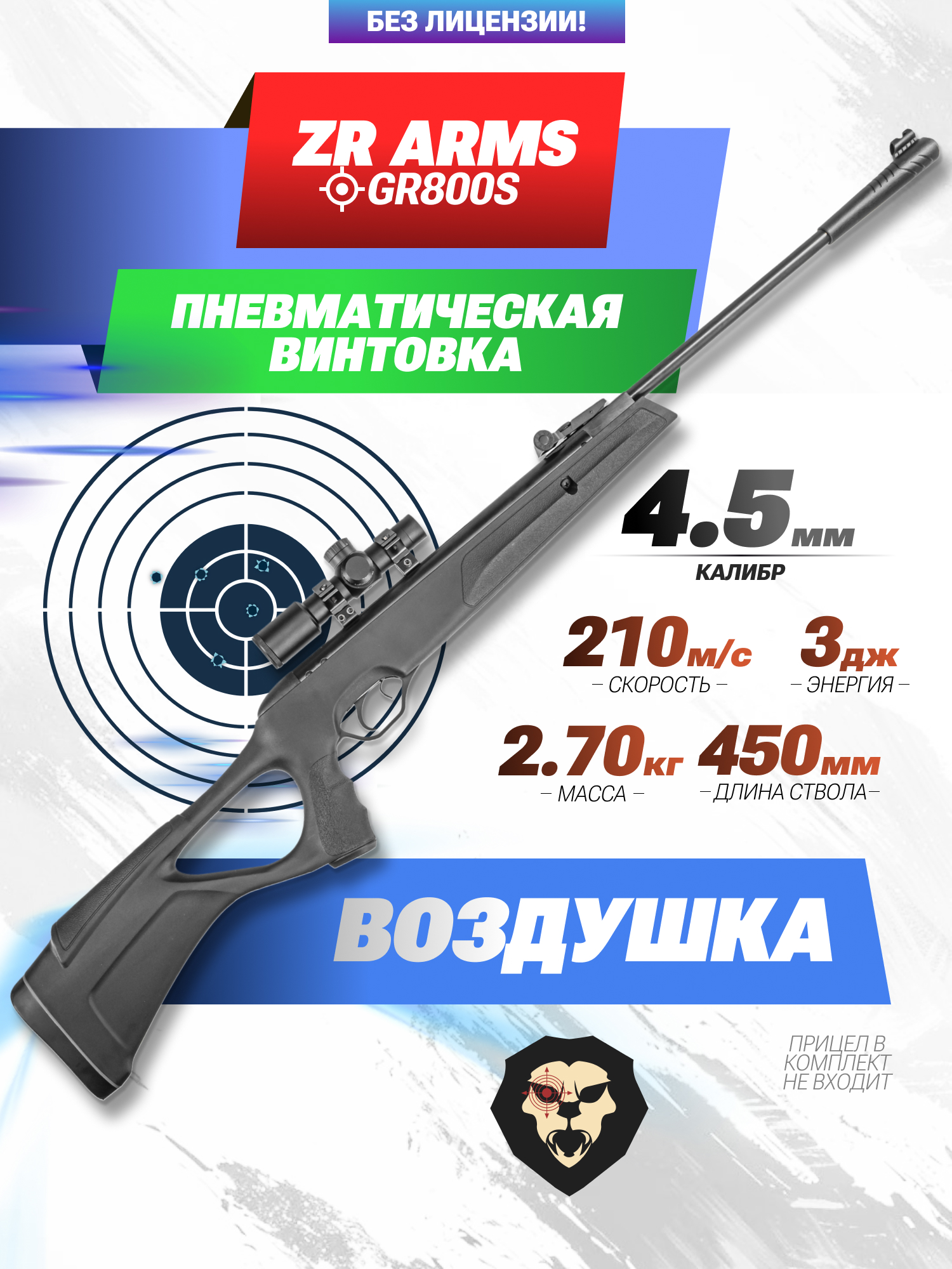 Пневматическая винтовка ZR Arms GR800S 4.5 мм (пластик, переломка) купить в интернет-магазине Popadiv10.