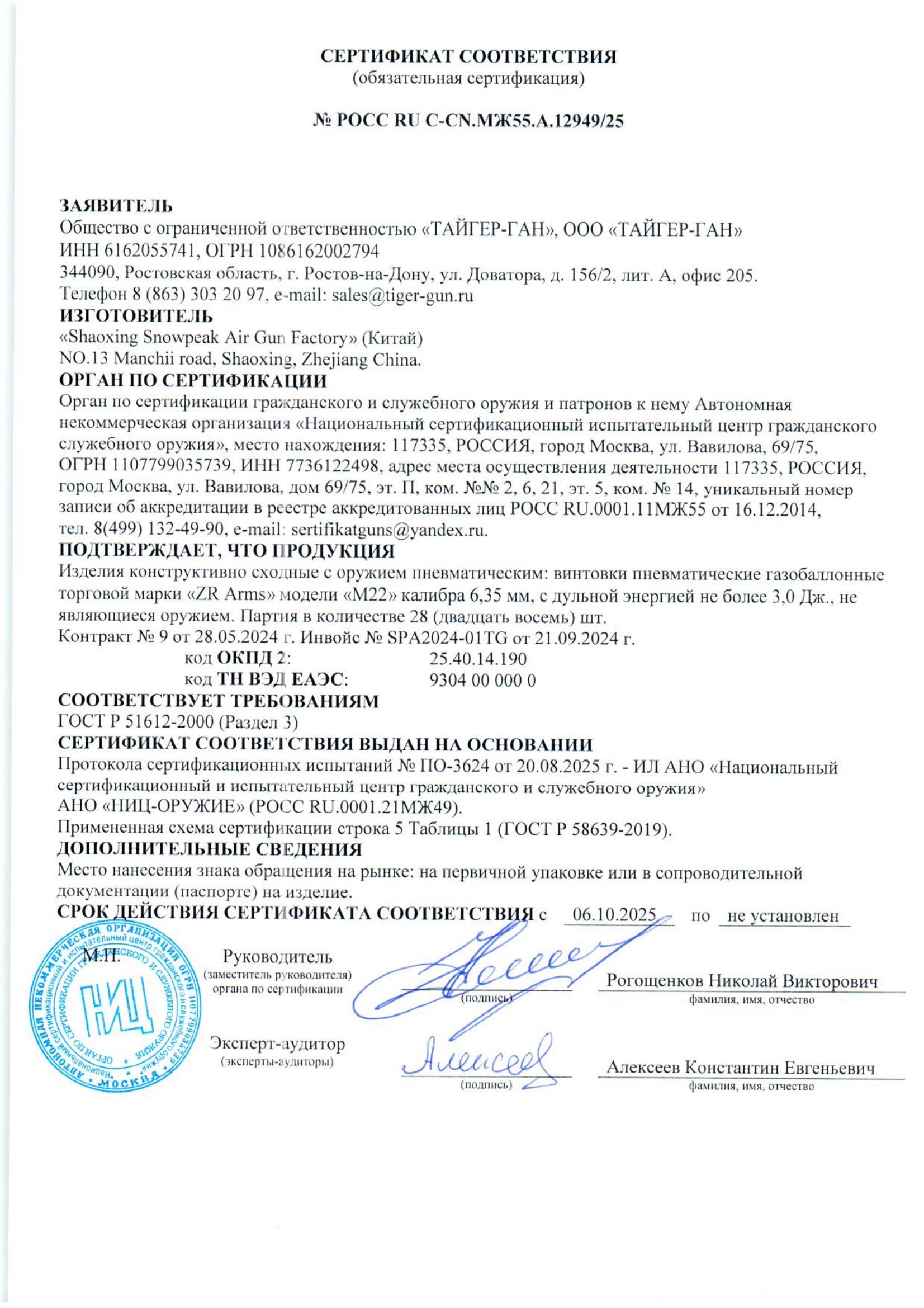 Пневматическая винтовка ZR Arms M22 6.35 мм (бук, ПСП) купить в интернет-магазине Popadiv10.