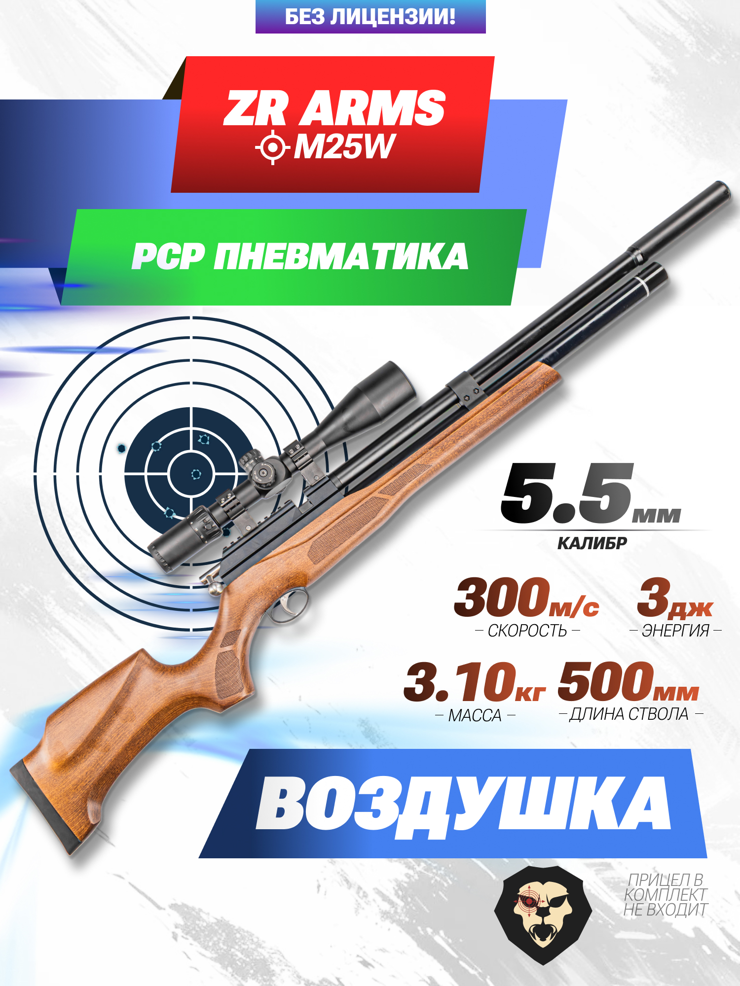 Пневматическая винтовка ZR Arms M25W 5.5 мм (бук, PCP) купить в интернет-магазине Popadiv10.