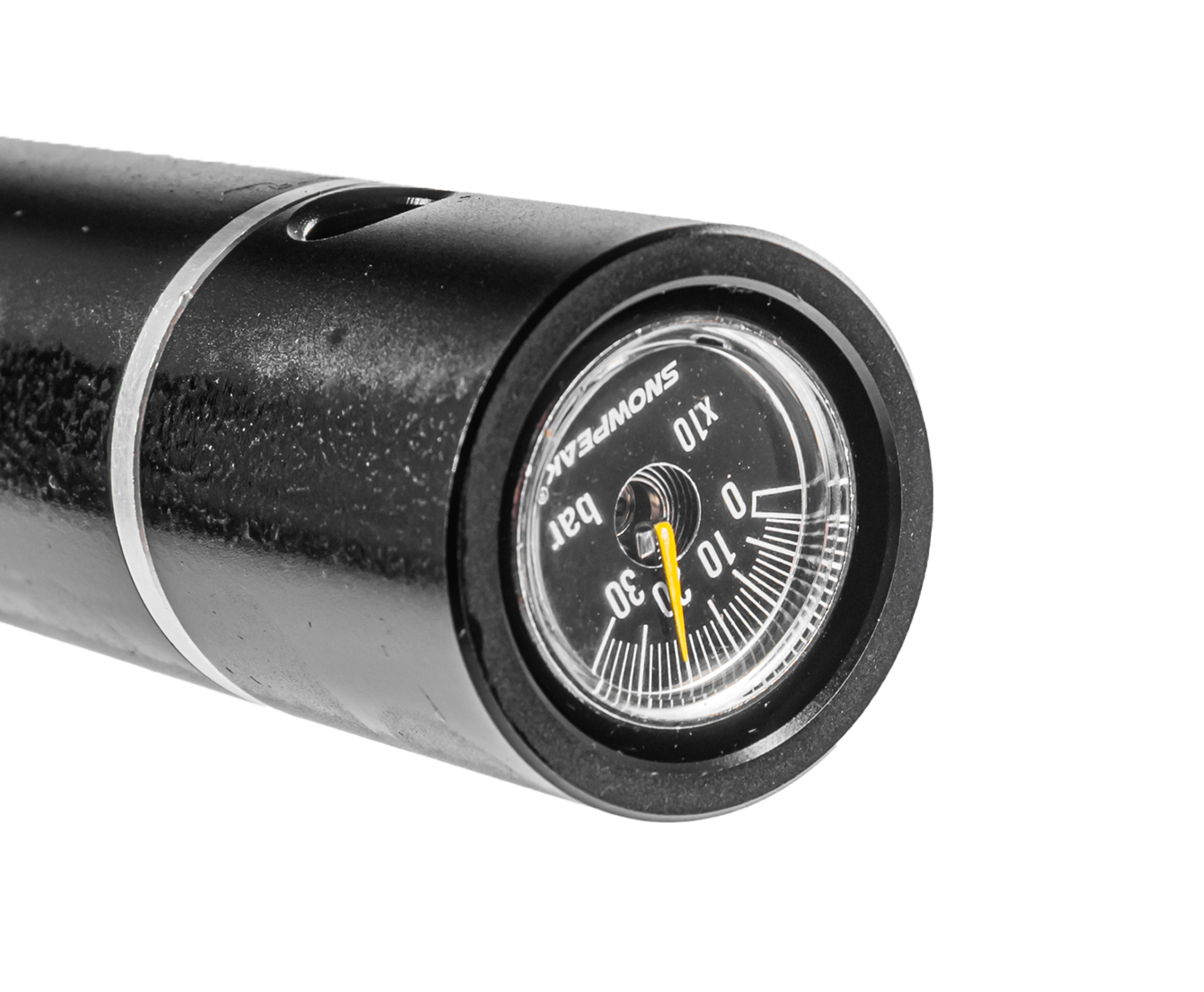 С торца баллона встроен манометр - датчик используется для оперативного контроля текущей степени заполнения ресивера. В схеме газораспределения также заявлен редуктор. Узел отвечает за регулировку давления подаваемого в ствол воздуха, что при индивидуальной настройке позволяет добиться предсказуемой эксплуатации оружия.