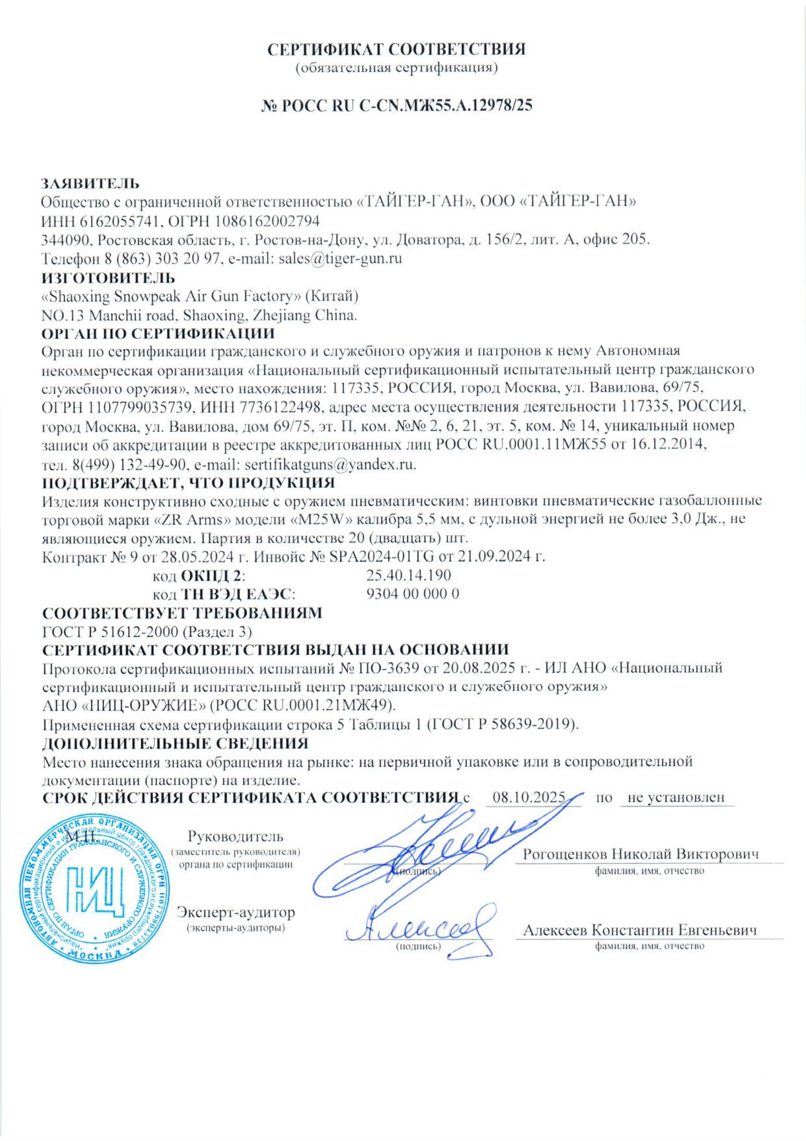 | Комплектация | Винтовка, магазин, упаковка, заправочный штуцер, краткая документация, копия сертификата (по запросу покупателя) |