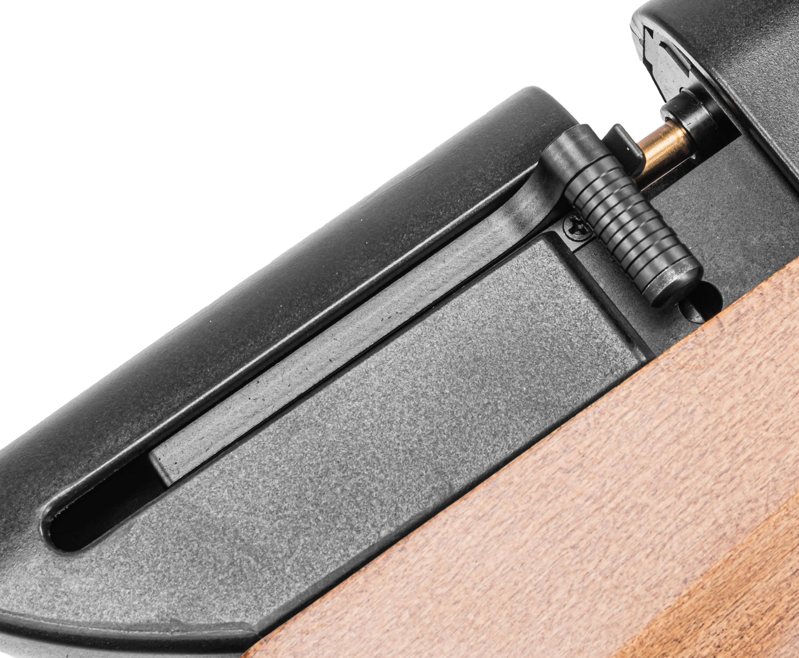 Модель в представленной вариации заряжается пулями .25 Cal. Бесперебойная подача снарядов в ствол происходит при помощи магазина. Комплектный клип-барабан рассчитан на 9 мест и поставляется в комплекте - он устанавливается в приемник, который находится в области подщечника приклада.