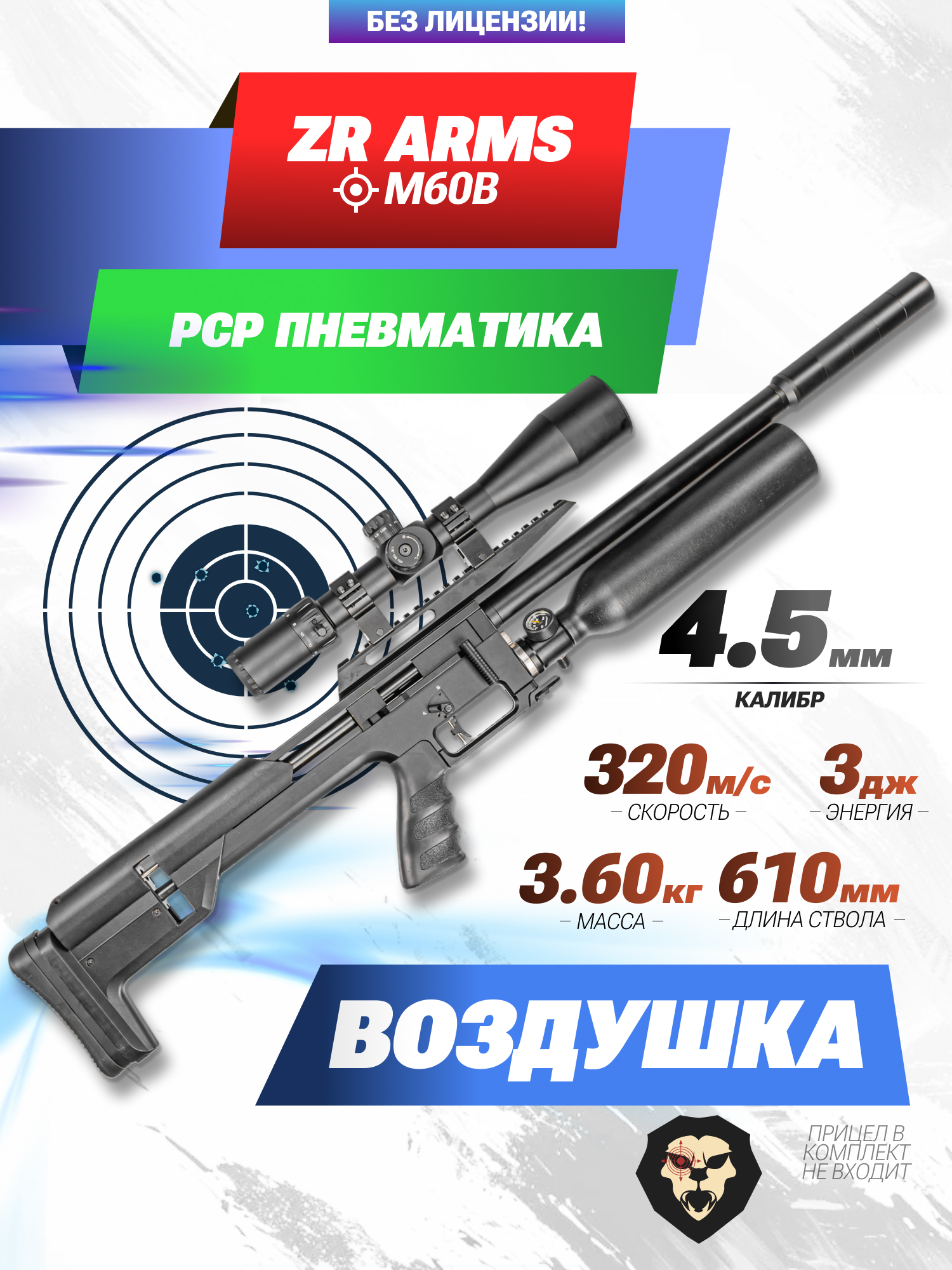 Пневматическая винтовка ZR Arms M60B 4.5 мм (пластик, колба, PCP) купить в интернет-магазине Popadiv10.