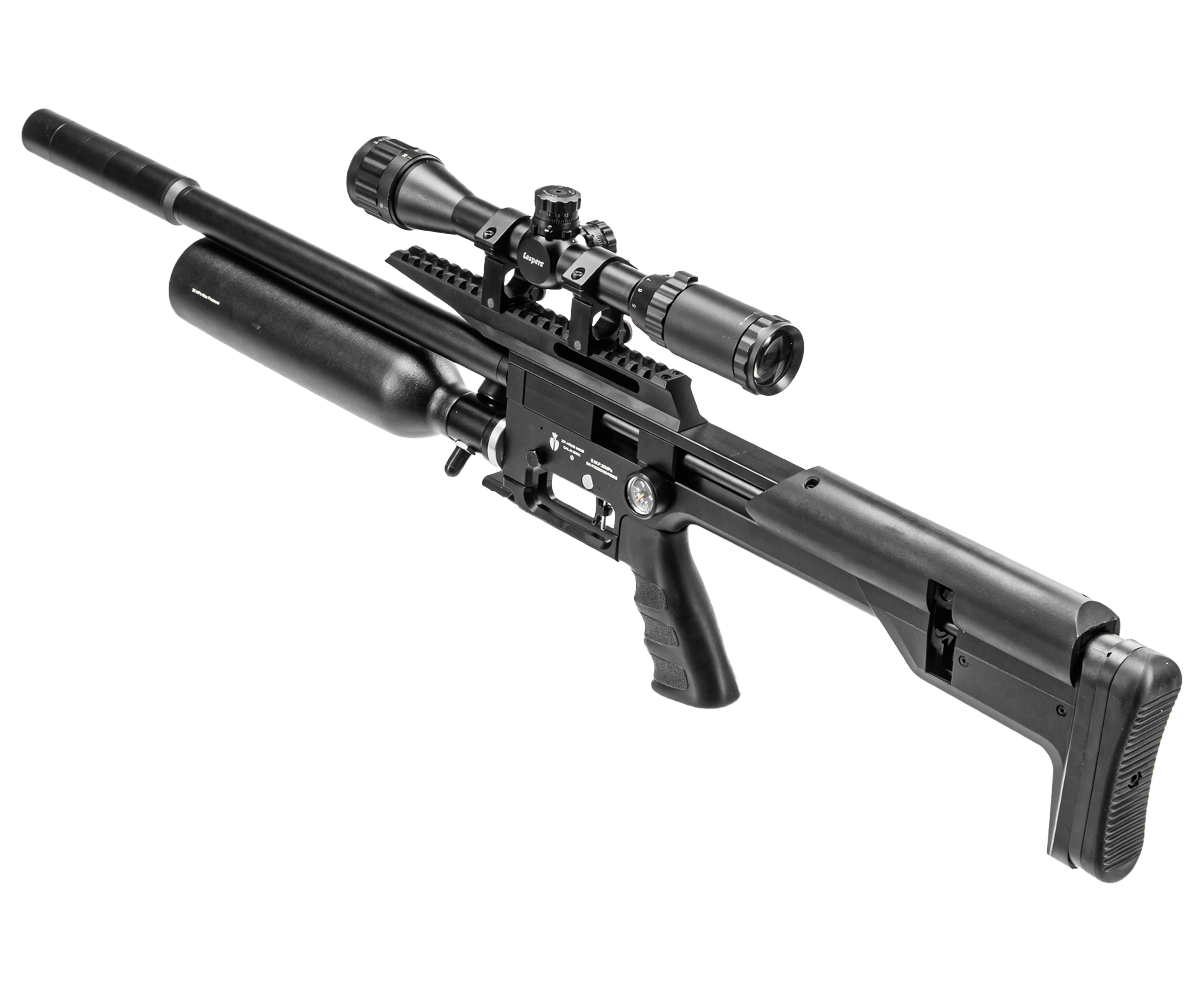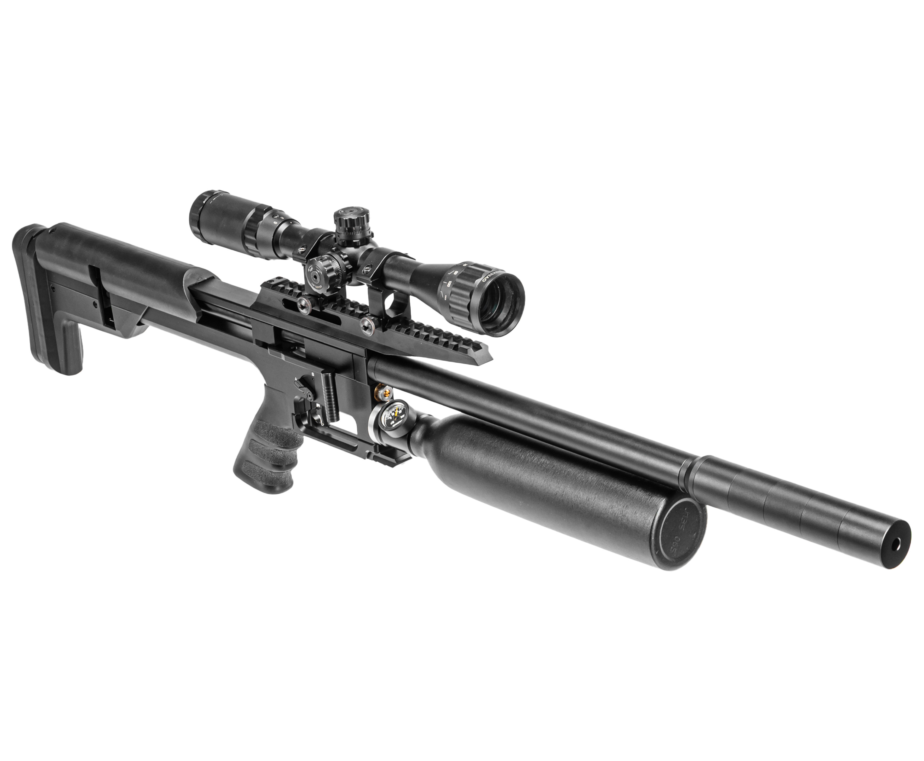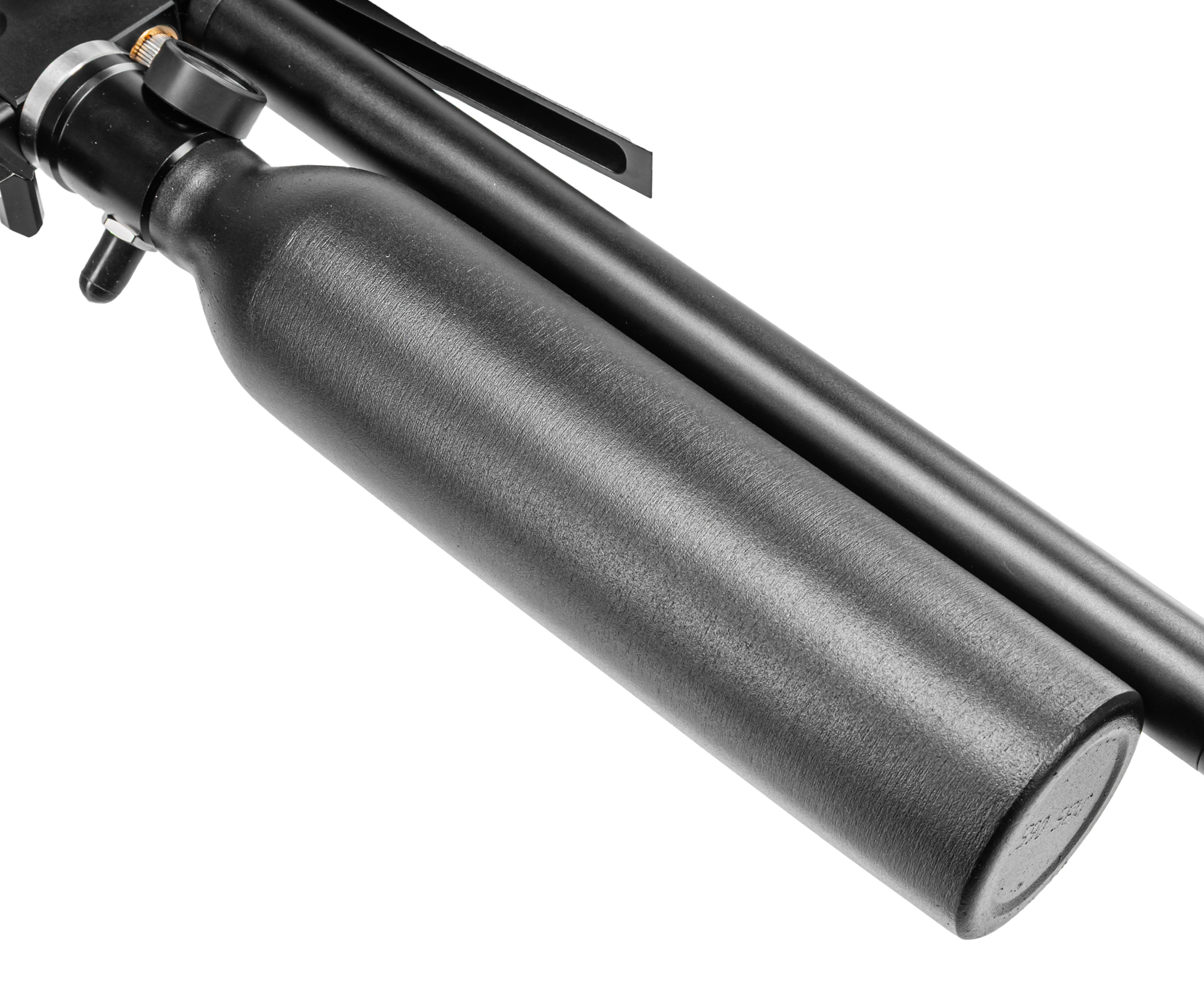 Пневматические винтовки, функционирующие по принципу предварительного заполнения ресивера, выделяются относительной автономностью работы. Однако количество доступных выстрелов напрямую зависит от объема установленного баллона. Помимо исполнений с классическим линейным резервуаром многие изготовители предлагают образцы с более вместительной колбой.