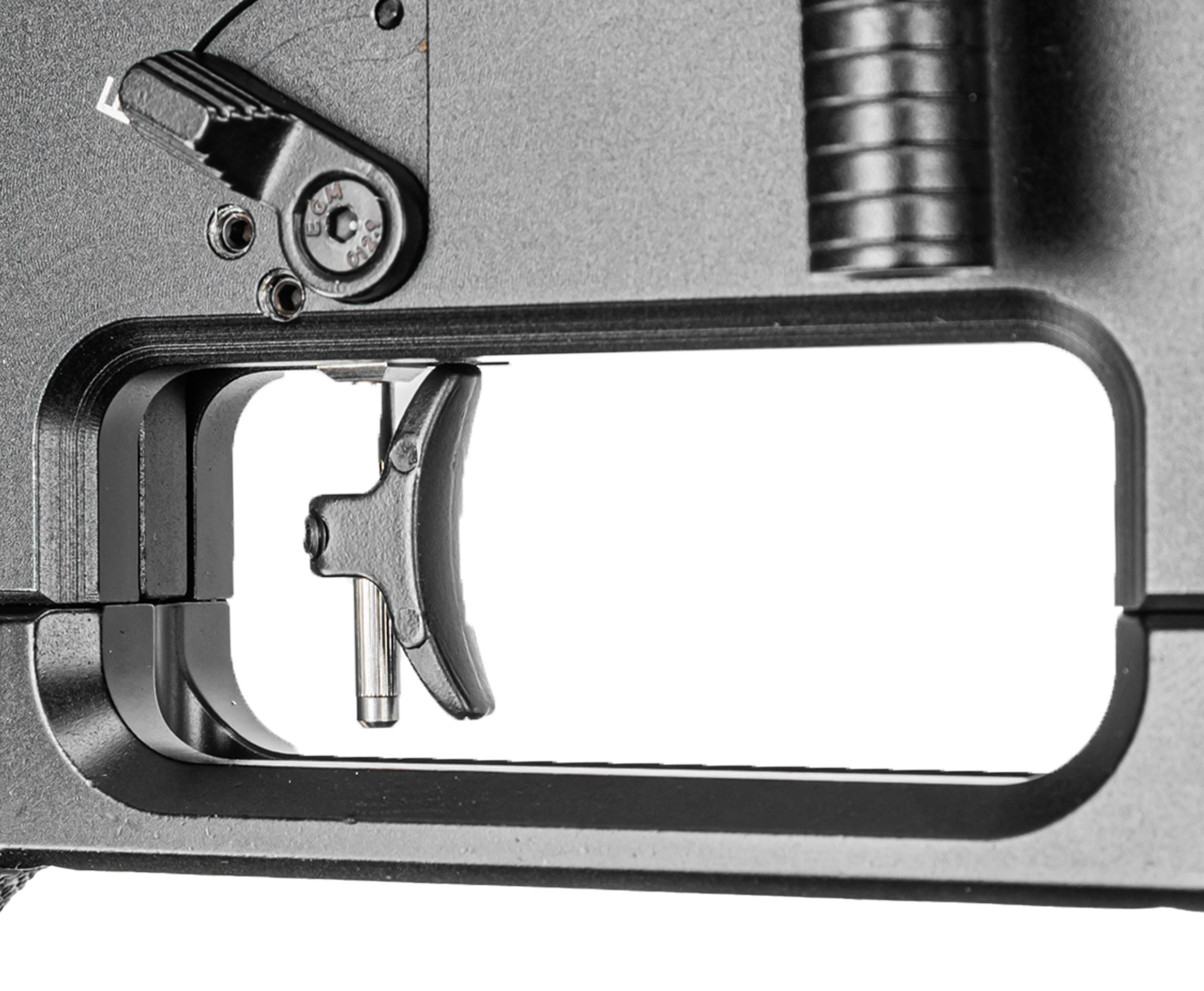 Спусковой крючок подразумевает тонкую регулировку по усмотрению стрелка. Кроме этого, в конструкции заявлен механический предохранитель, который выполнен в виде флажкового селектора и расположен над скобой. Винтовка порадует эргономичностью и комфортна в обращении.