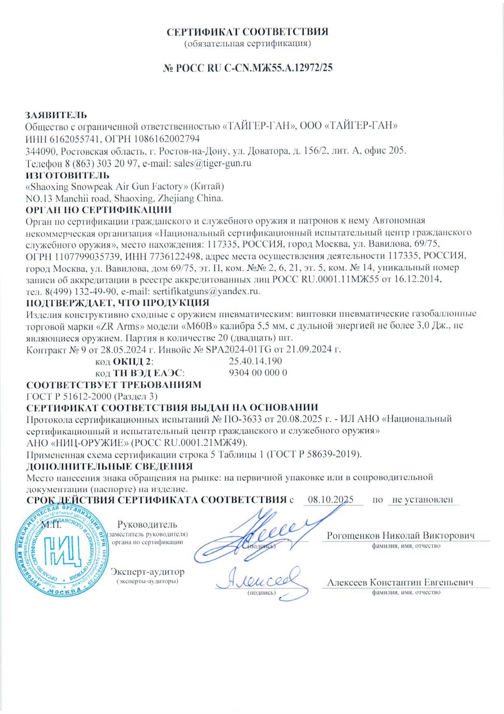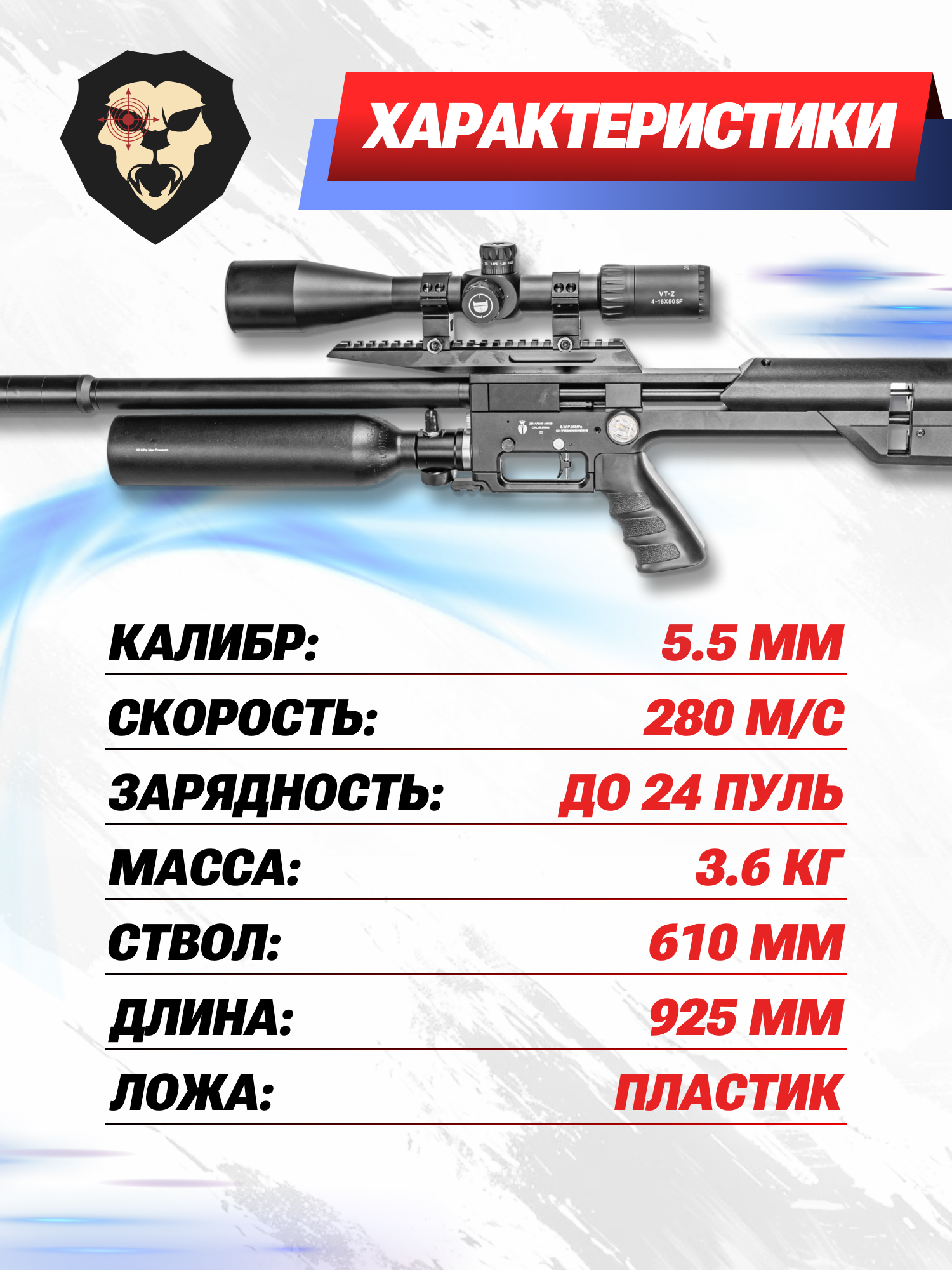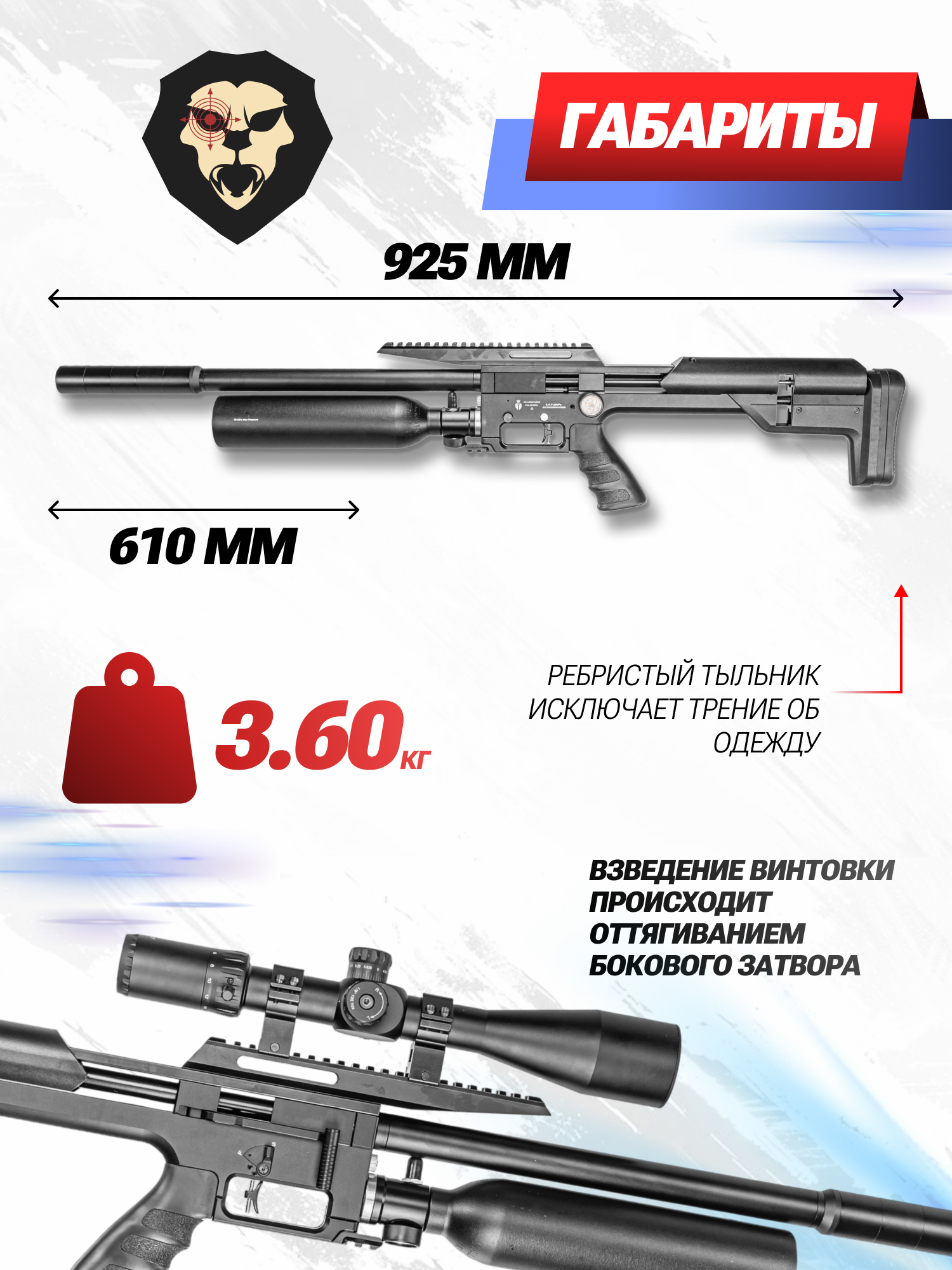 | Комплектация | Винтовка, магазин, упаковка, заправочный штуцер, краткая документация, копия сертификата (по запросу покупателя) |