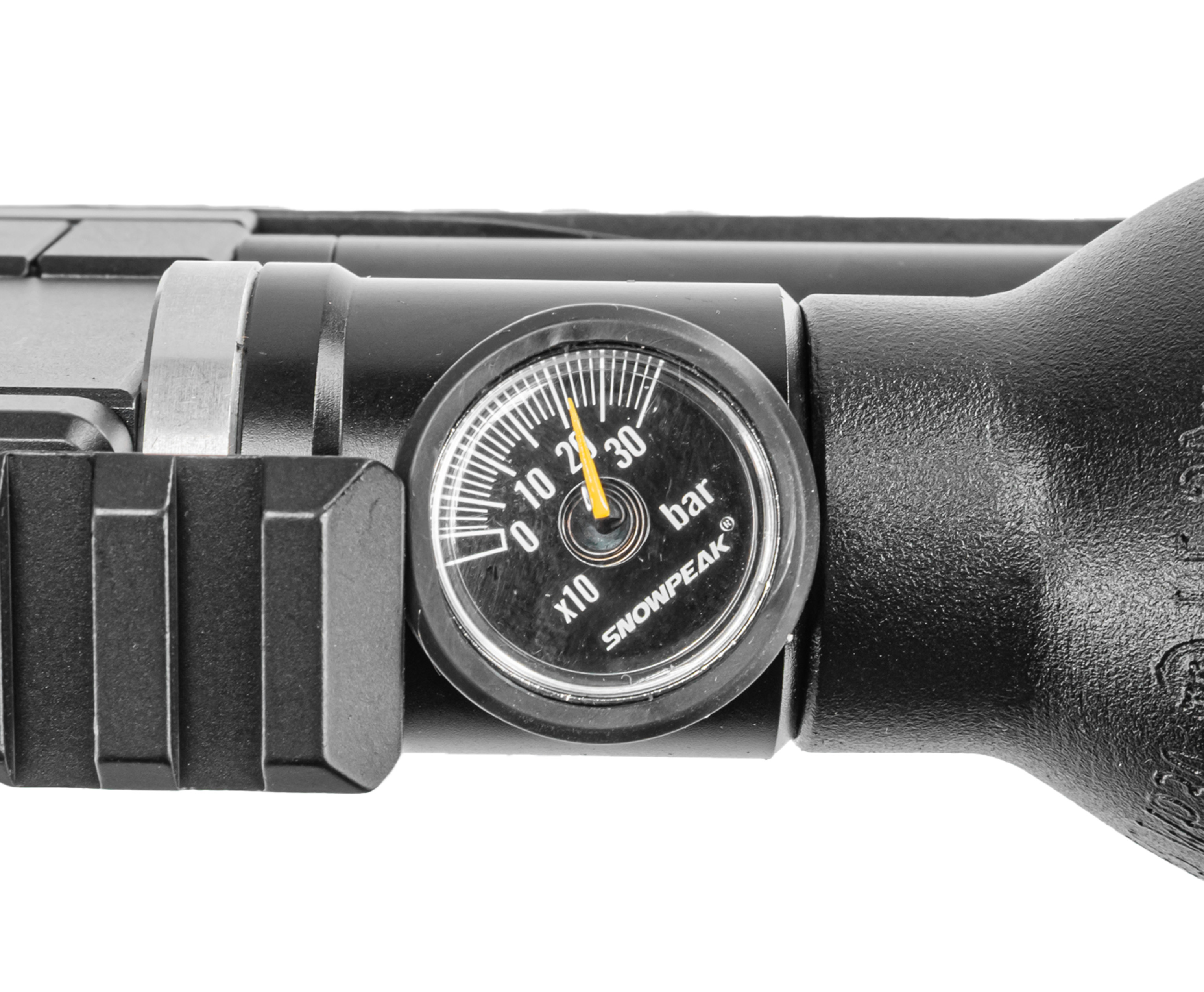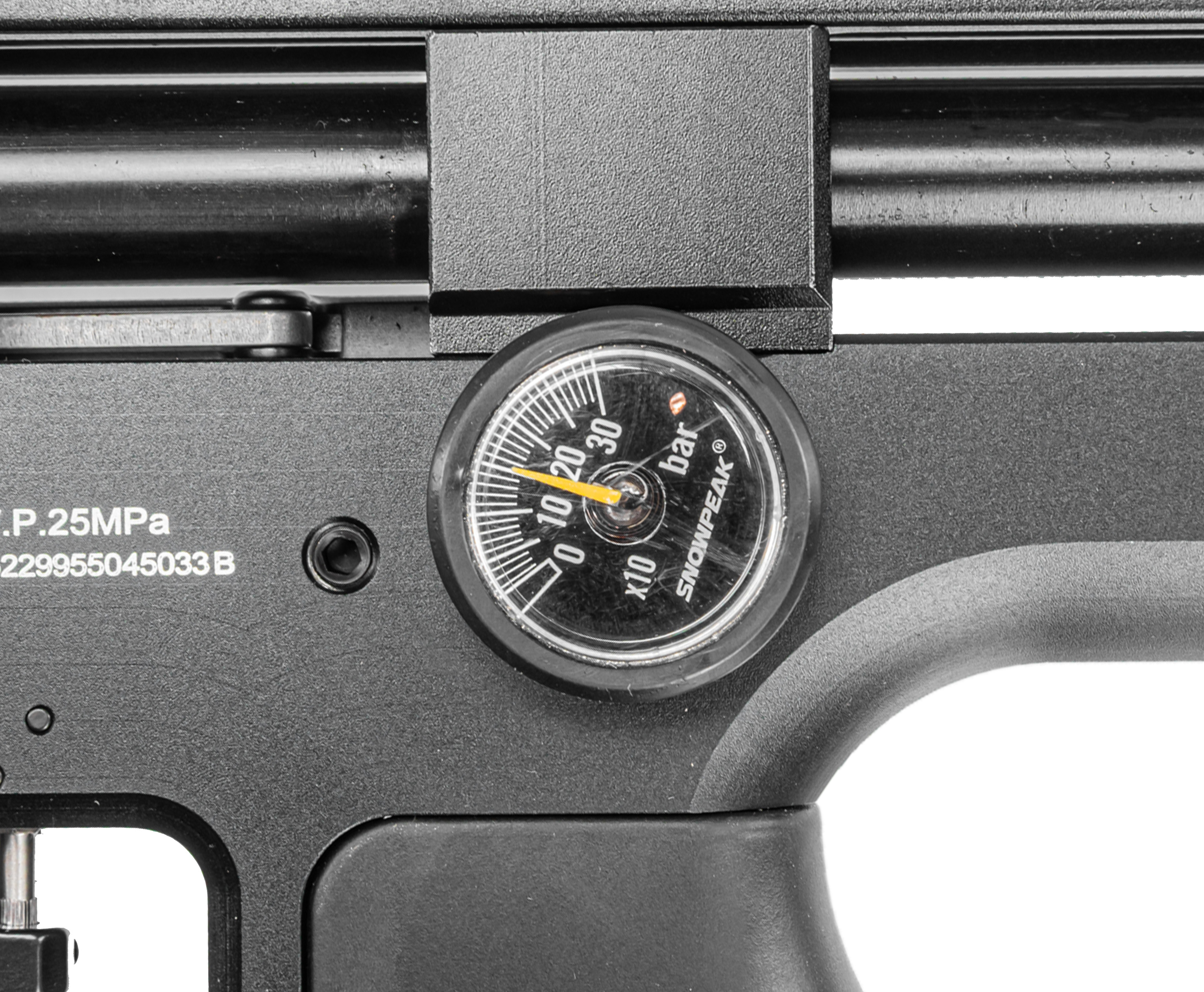 Метаемые снаряды подаются из барабанного магазина, а воздух для разгона по каналу ствола поступает через редуктор. Указанный модуль при должной настройке способствует стабильному функционированию системы и высокой повторяемости выстрела. Предельное значение давления в колбе, в свою очередь, равно 250 Бар - степень заполнения в любой момент контролируется шкалой манометра.