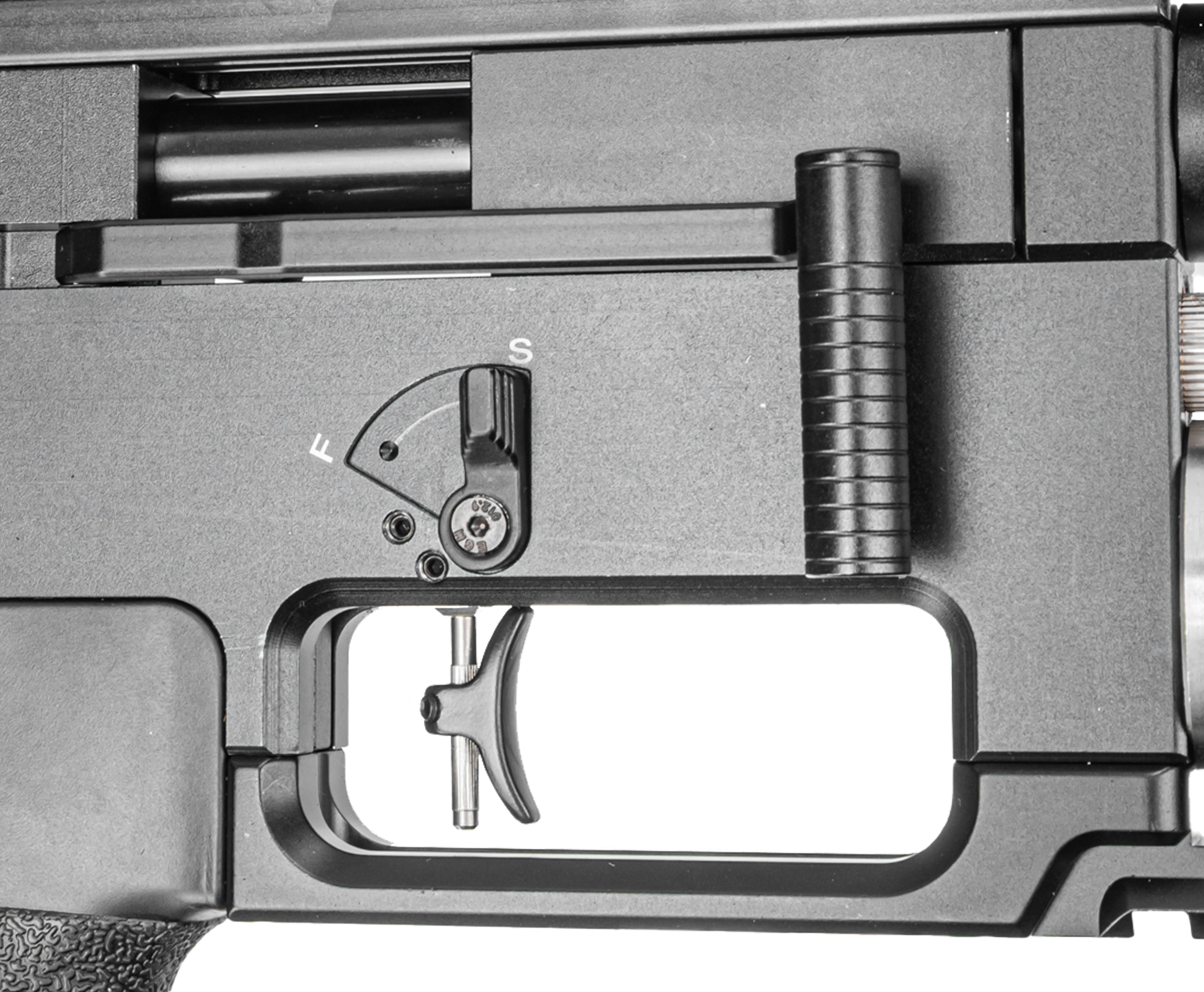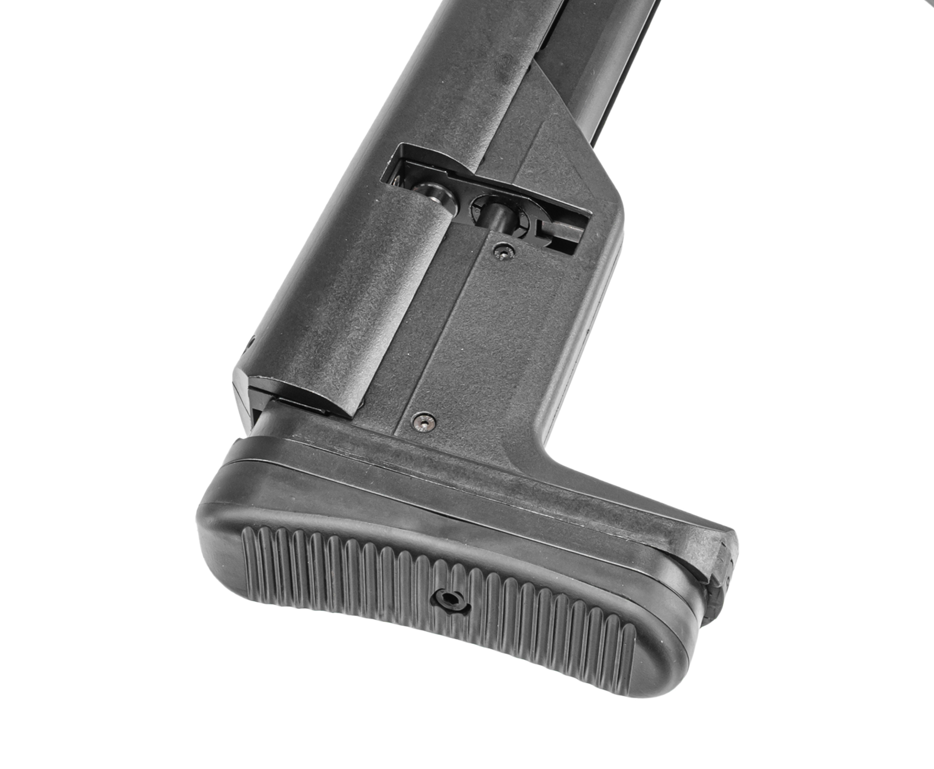 Фурнитура винтовки изготавливается из ударостойкого полимера, из-за чего вес образца не превышает 3.68 кг. Органы управления в виде рычага затвора и флажкового предохранителя сосредоточены по центру возле спусковой скобы. В свою очередь сам триггер подразумевает гибкую регулировку под нужды владельца.