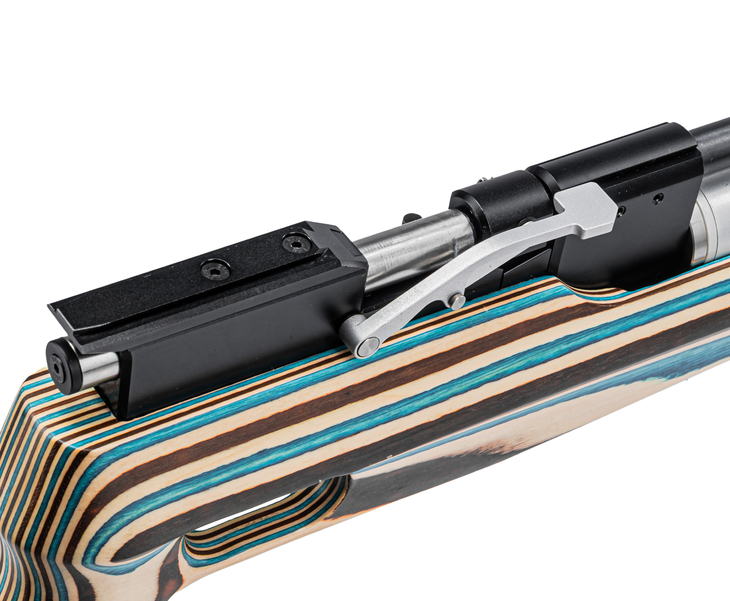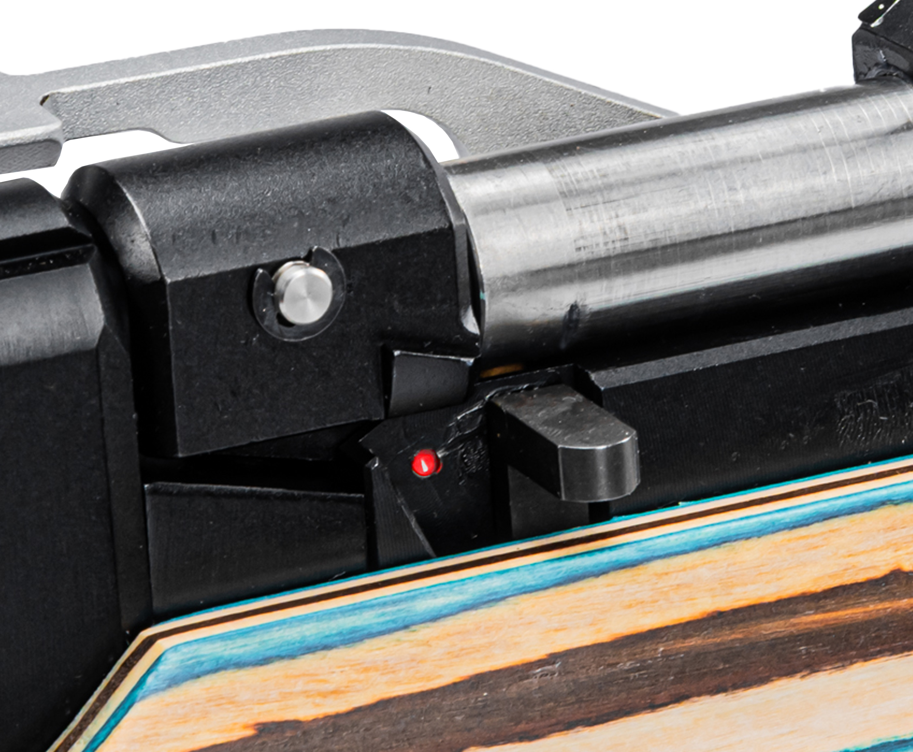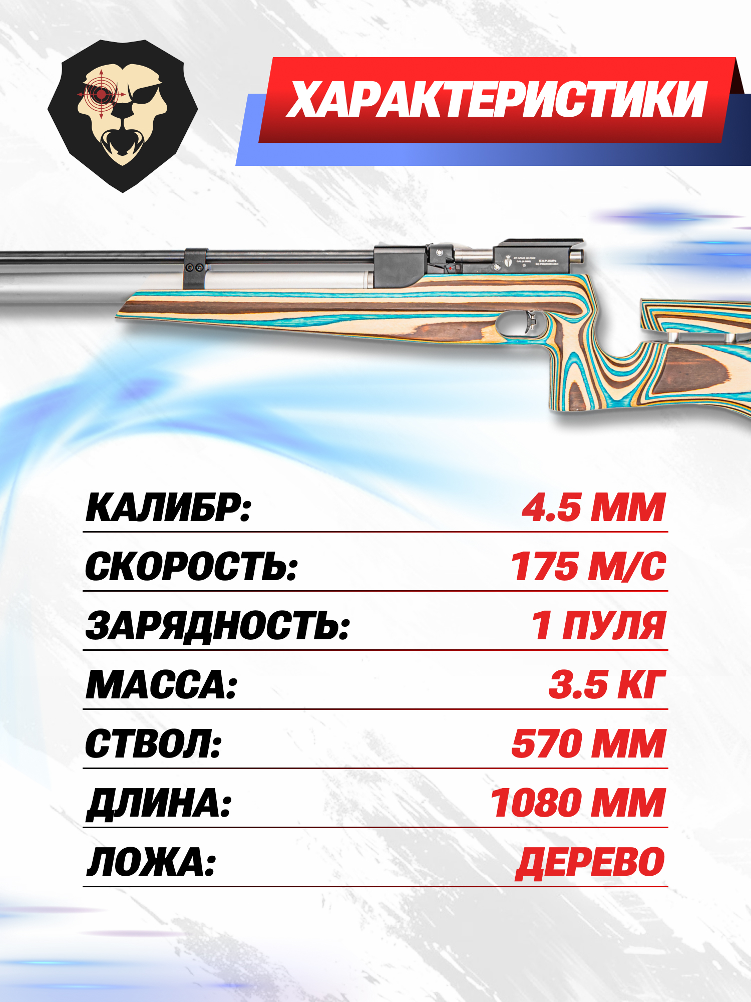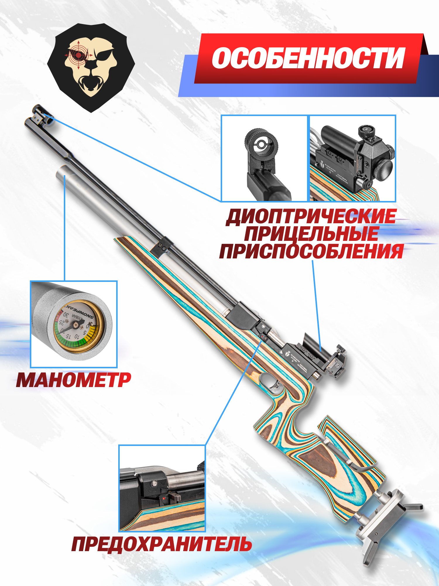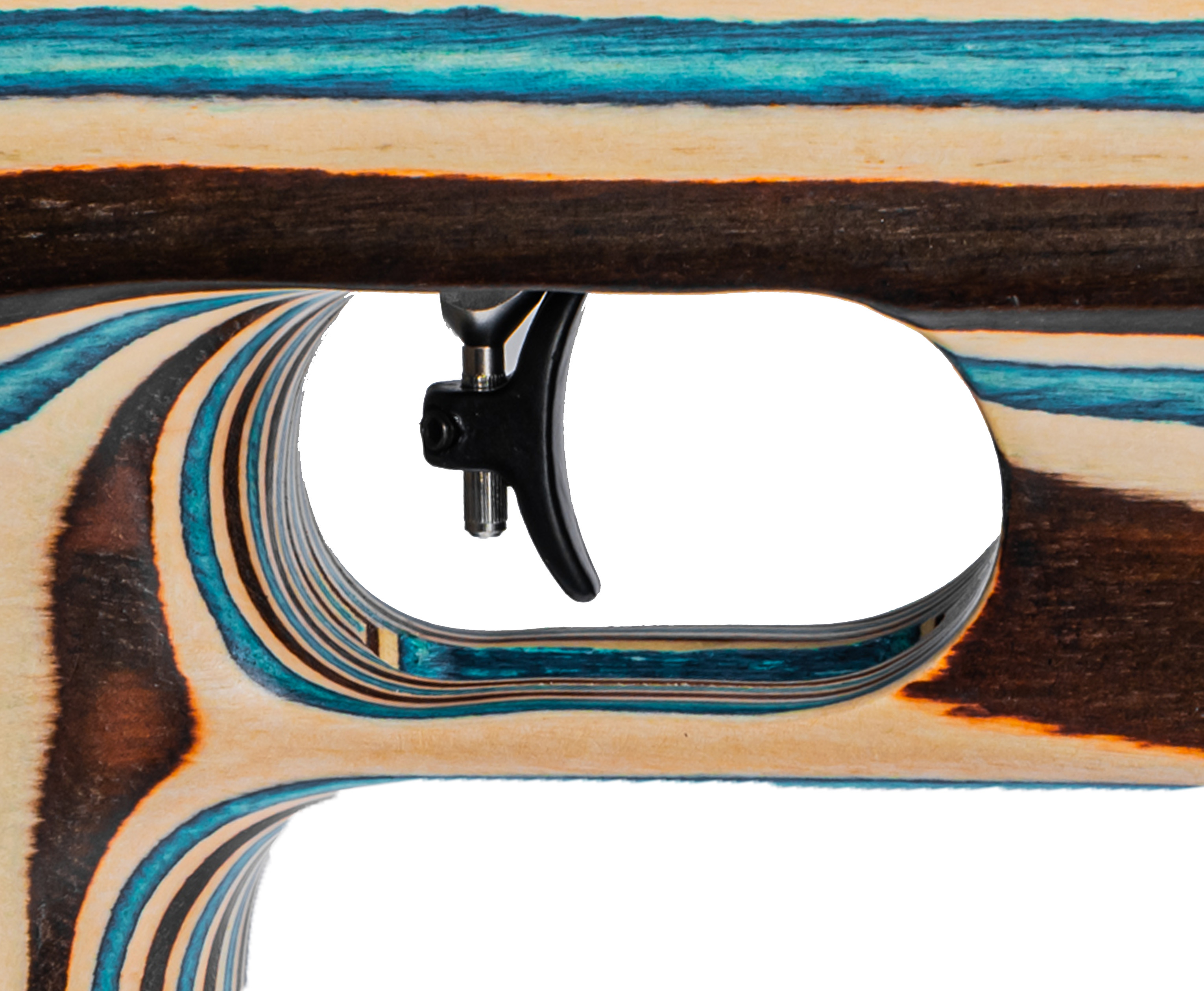 Деревянное ламинатное ложе, помимо внешней привлекательности, также наделили полезным функционалом - здесь присутствует настраиваемый тыльник приклада вкупе с подщечником. Длина оружия 106 см - компромисс для разных спортсменов разных комплекций. При этом параметр массы приближен к 3.31 килограмма - в контексте дисциплины это достоинство, т.к. вес помогает избежать колебаний тела в стойке.