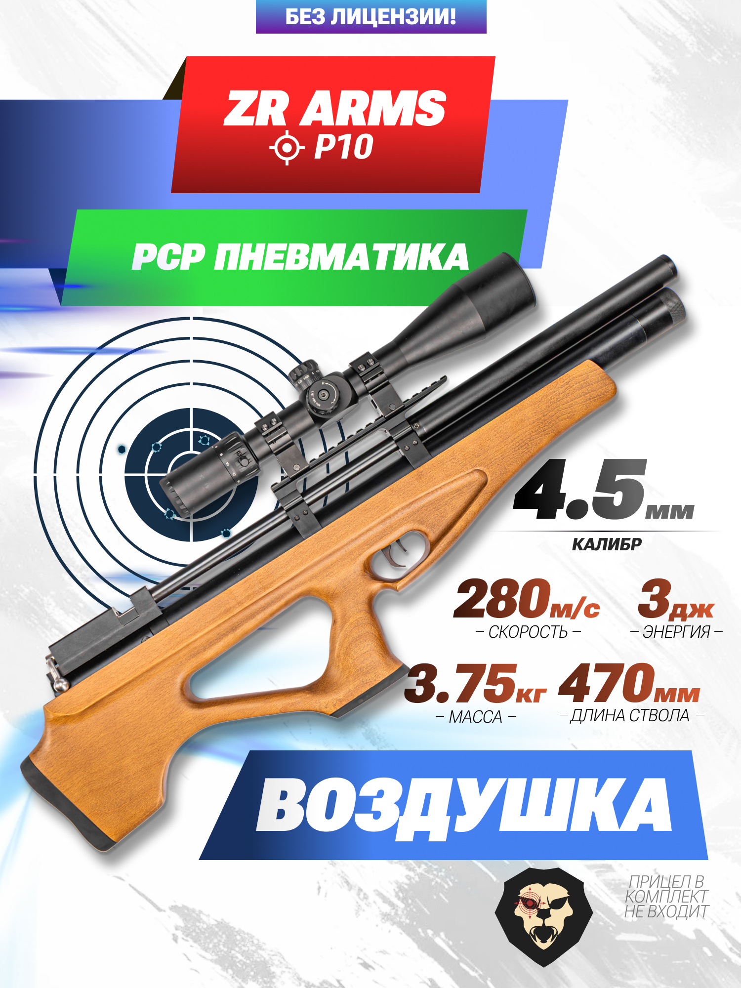 Информация о товаре "Пневматическая винтовка ZR Arms P10 4.5 мм (бук, ПСП)" носит ознакомительный характер, и не является публичной офертой, определяемой положениями Статьи 437 Гражданского кодекса Российской Федерации, характеристики, внешний вид, цвет и комплектация могут быть изменены производителем без уведомления.