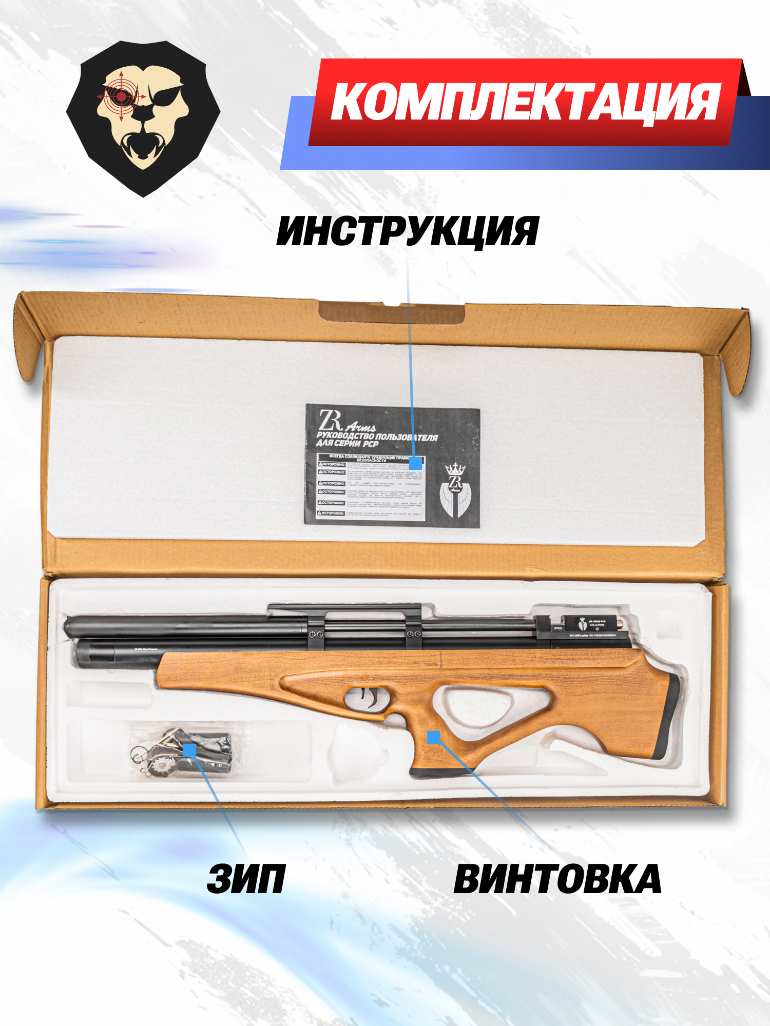 | Комплектация | Винтовка, магазин, упаковка, заправочный штуцер, краткая документация, копия сертификата (по запросу покупателя) |