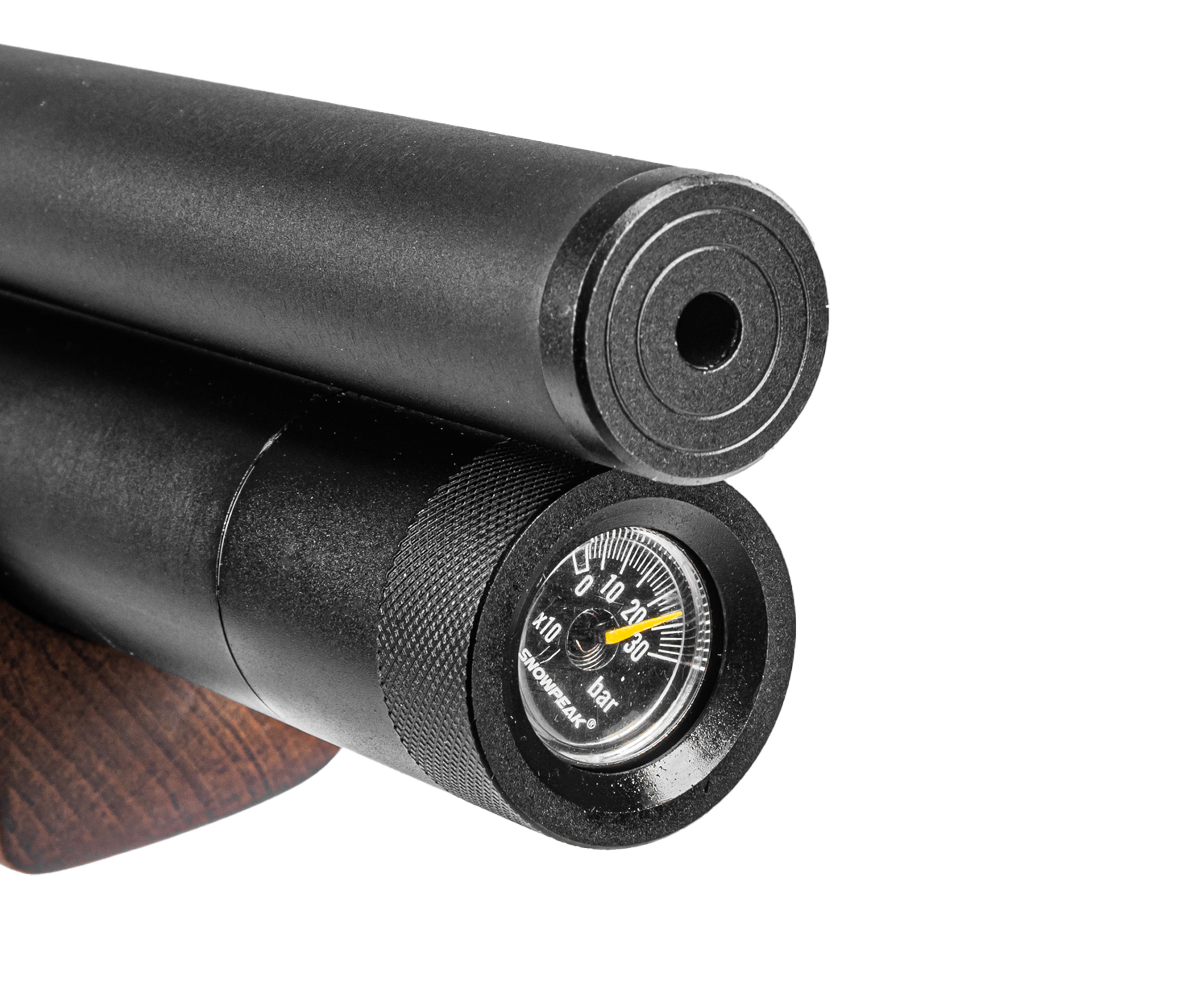 Так как ЗР Армс П10 относится к классу PCP, для функционирования потребуется заполнить воздухом встроенный резервуар. Штатный линейный ресивер рассчитан на 350 кубических сантиметров. Увеличенный объем дает совершить больше выстрелов с одной заправки.
