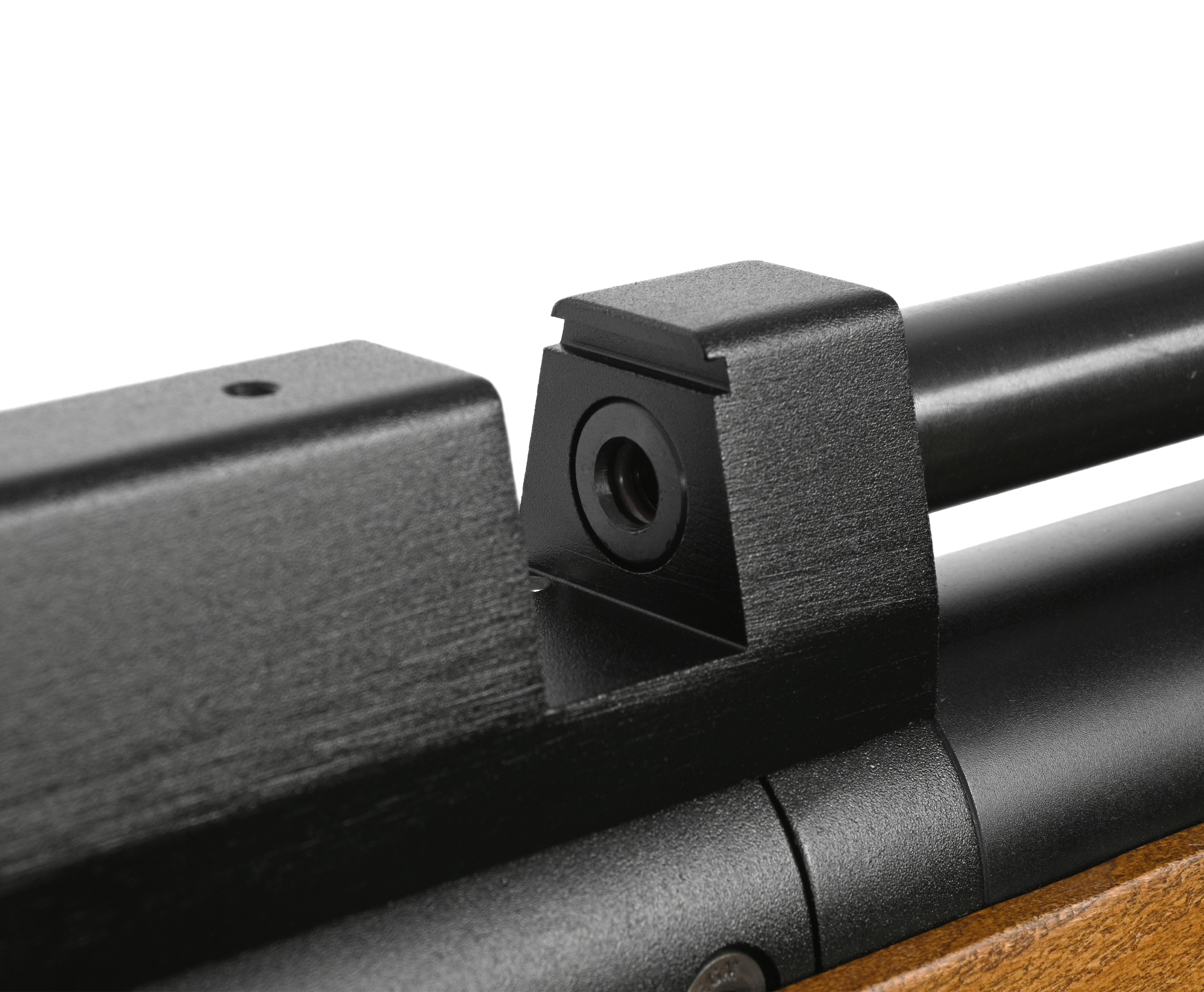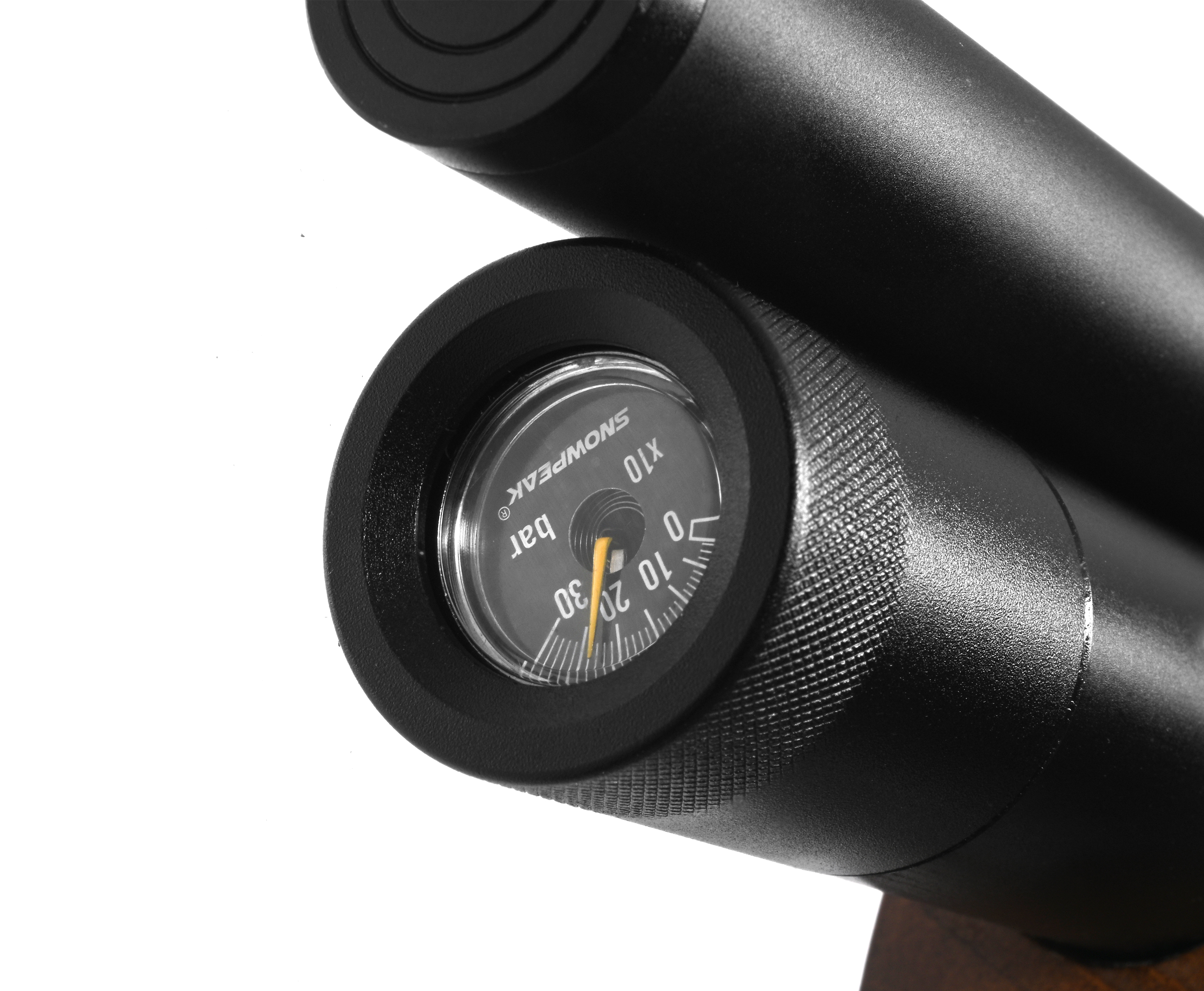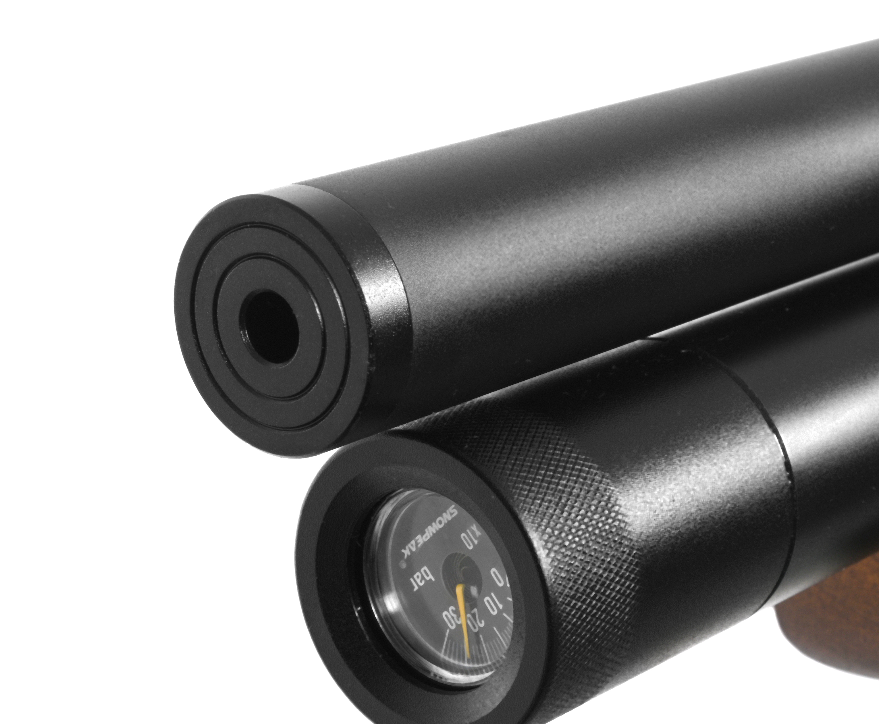 Предельный показатель давления в системе - 250 Бар. Текущее состояние можно оперативно контролировать посредством манометра. В схеме распределения воздуха предусмотрен редуктор, в результате тонкой настройки которого винтовка показывает более стабильную и предсказуемую работу.