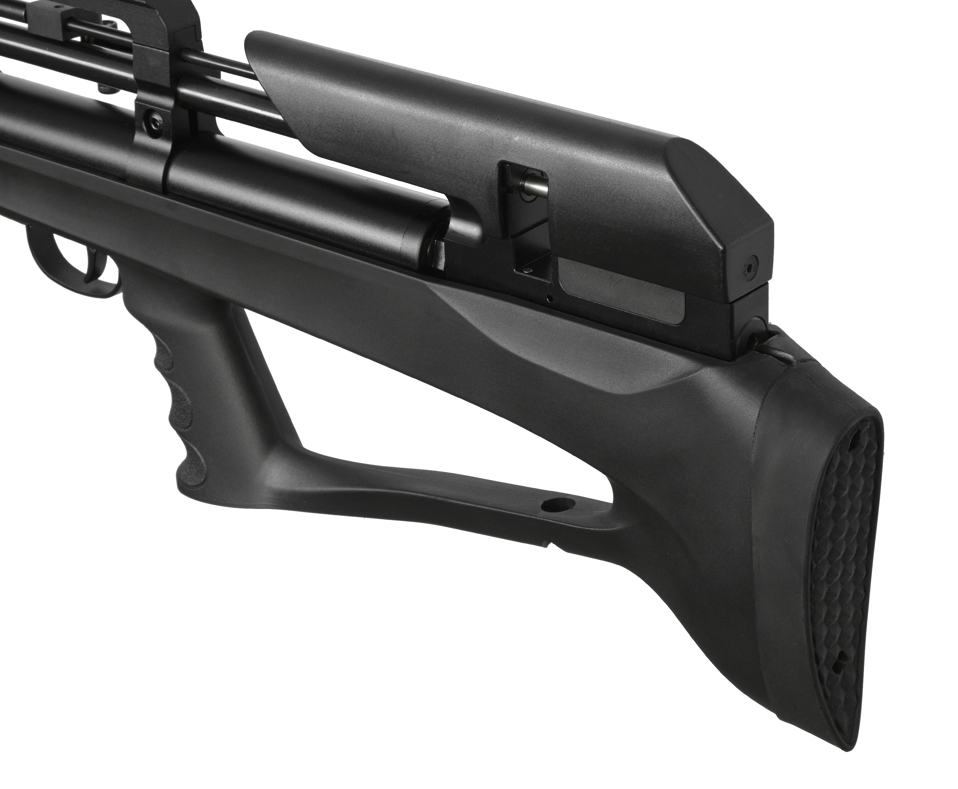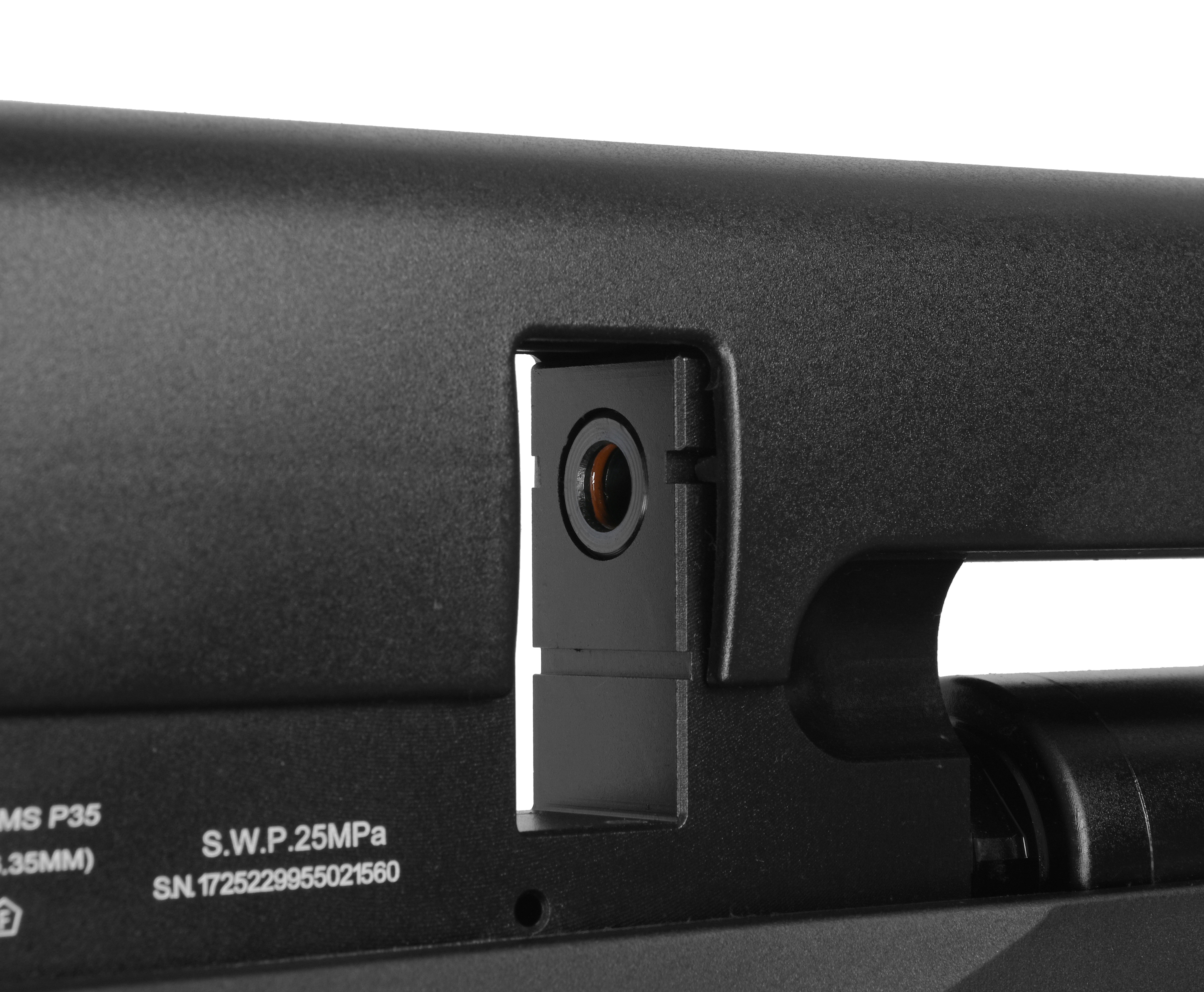В товарном ряде представлены образцы как в классической компоновке, так и в исполнении Булл-Пап. К числу последних относится рассматриваемая винтовка серии P35, которая выполнена в калибре 6.35 мм. Пневматика, несмотря на компактную конфигурацию, оснащается 45 см стволом с 12-ю полигональными нарезами.
