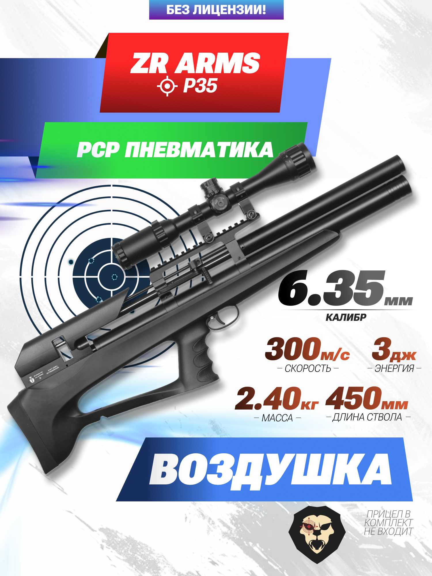 Пневматическая винтовка ZR Arms P35 6.35 мм (до 3 дж, пластик, PCP) купить в интернет-магазине Popadiv10.