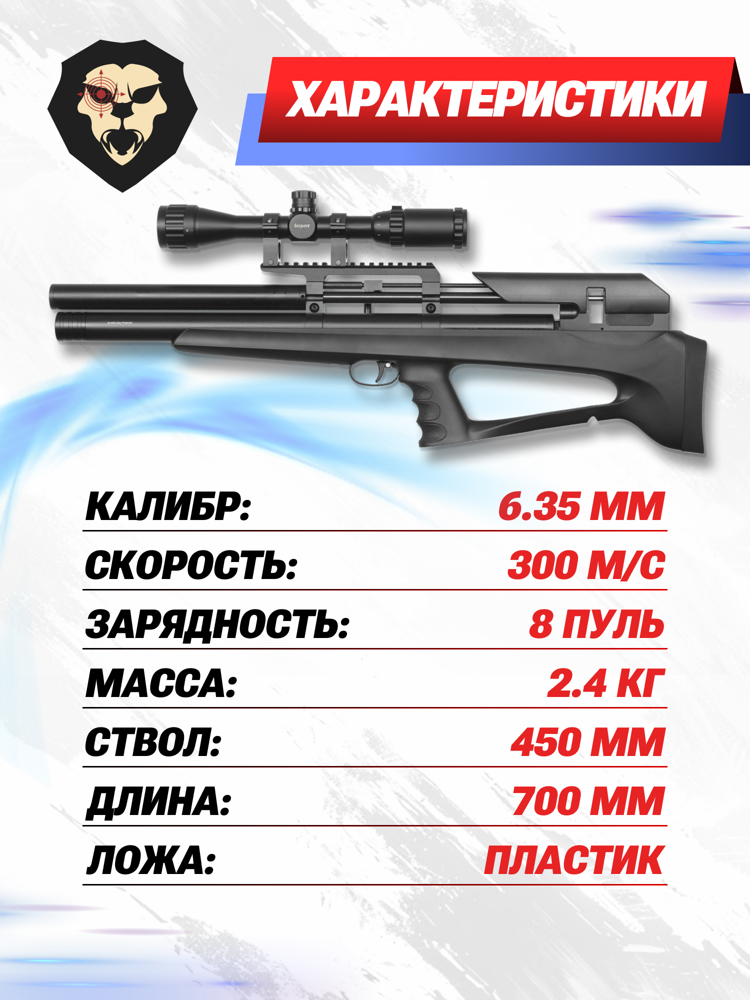 Информация о товаре "Пневматическая винтовка ZR Arms P35 6.35 мм (до 3 дж, пластик, PCP)" носит ознакомительный характер, и не является публичной офертой, определяемой положениями Статьи 437 Гражданского кодекса Российской Федерации, характеристики, внешний вид, цвет и комплектация могут быть изменены производителем без уведомления.