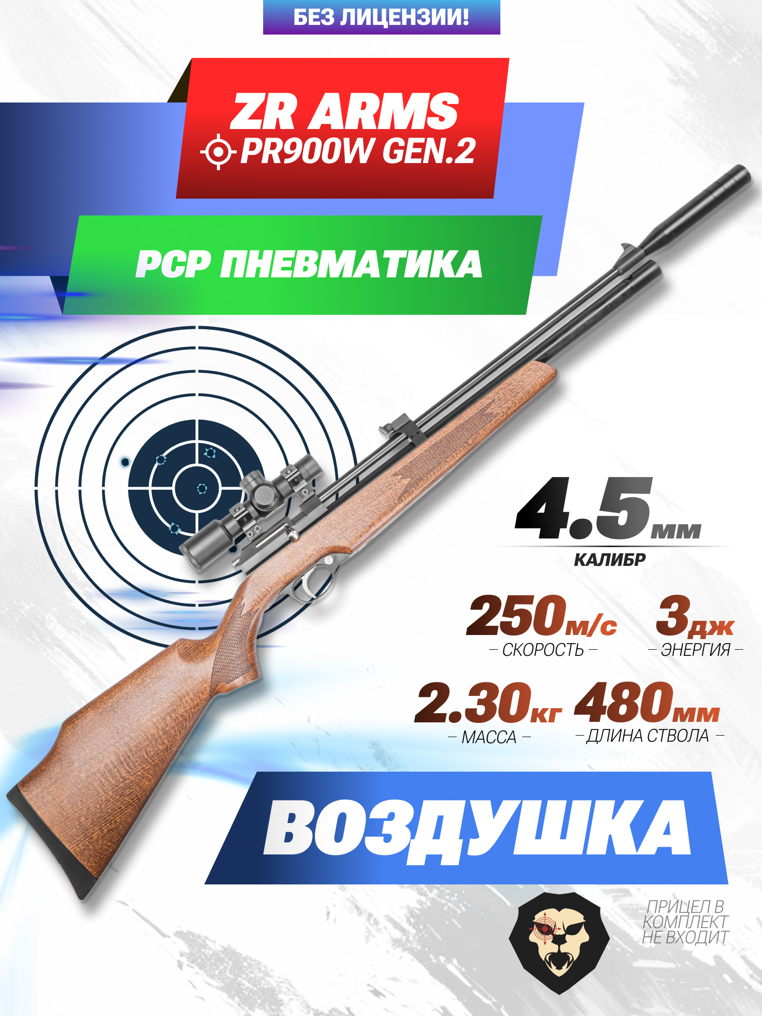 Пневматическая винтовка ZR Arms PR900W Gen.2 4.5 мм (PCP, дерево) купить в интернет-магазине Popadiv10.