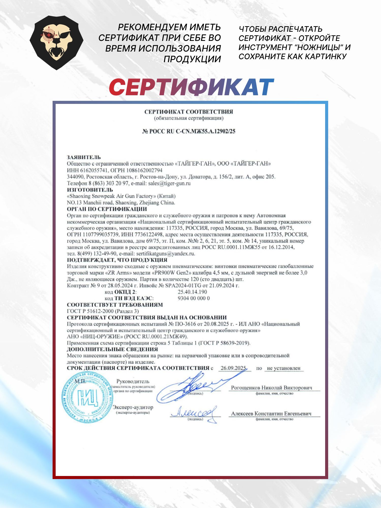 Информация о товаре "Пневматическая винтовка ZR Arms PR900W Gen.2 4.5 мм (PCP, дерево)" носит ознакомительный характер, и не является публичной офертой, определяемой положениями Статьи 437 Гражданского кодекса Российской Федерации, характеристики, внешний вид, цвет и комплектация могут быть изменены производителем без уведомления.