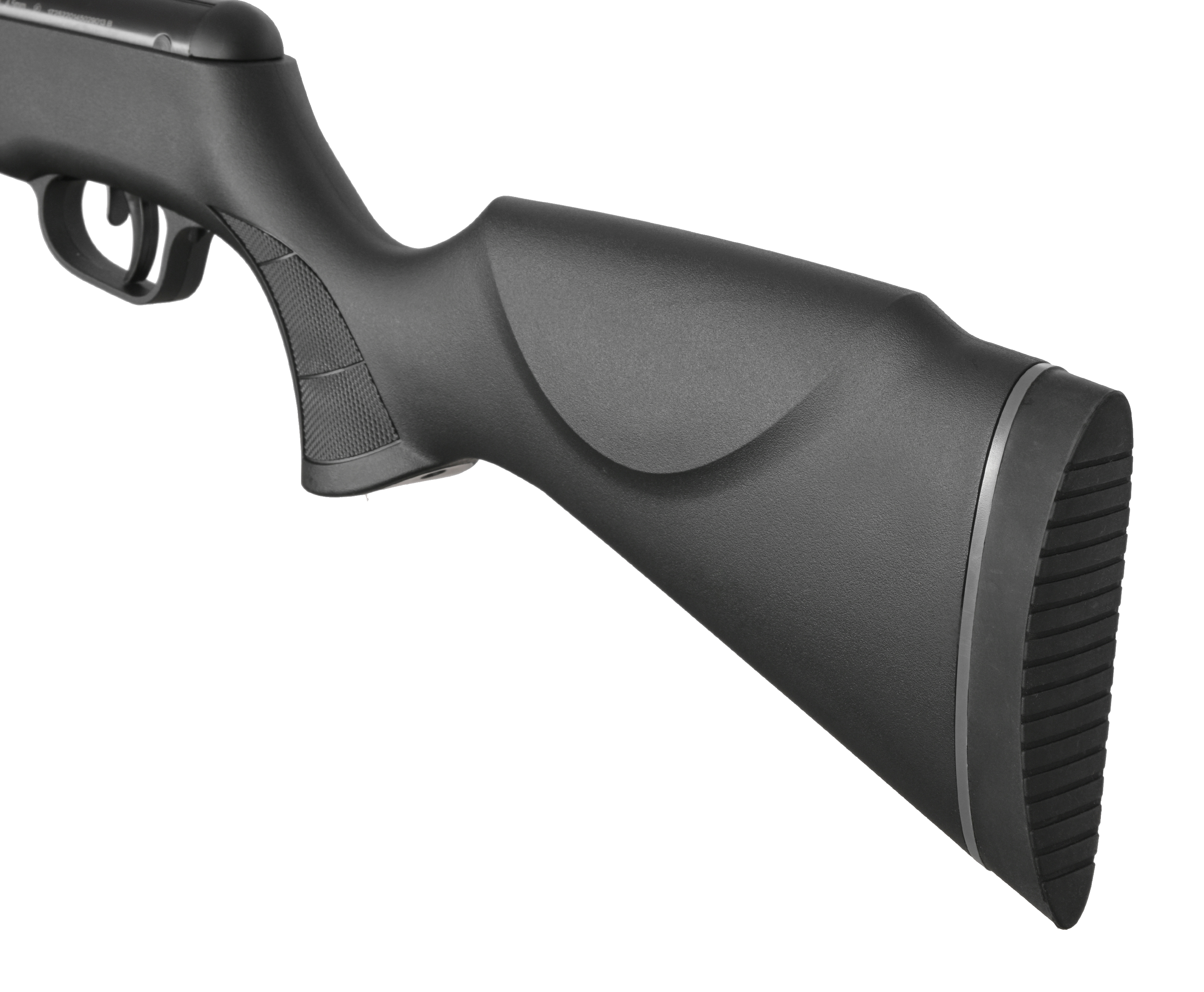 Модель оформлена ложей из ударопрочного современного полимера. Долговечный пластик черного цвета со стороны цевья и рукояти имеет текстурированную поверхность, уменьшающую скольжение при удержании оружия. Приклад при этом снабдили ребристым тыльником, который амортизирует отдачу.