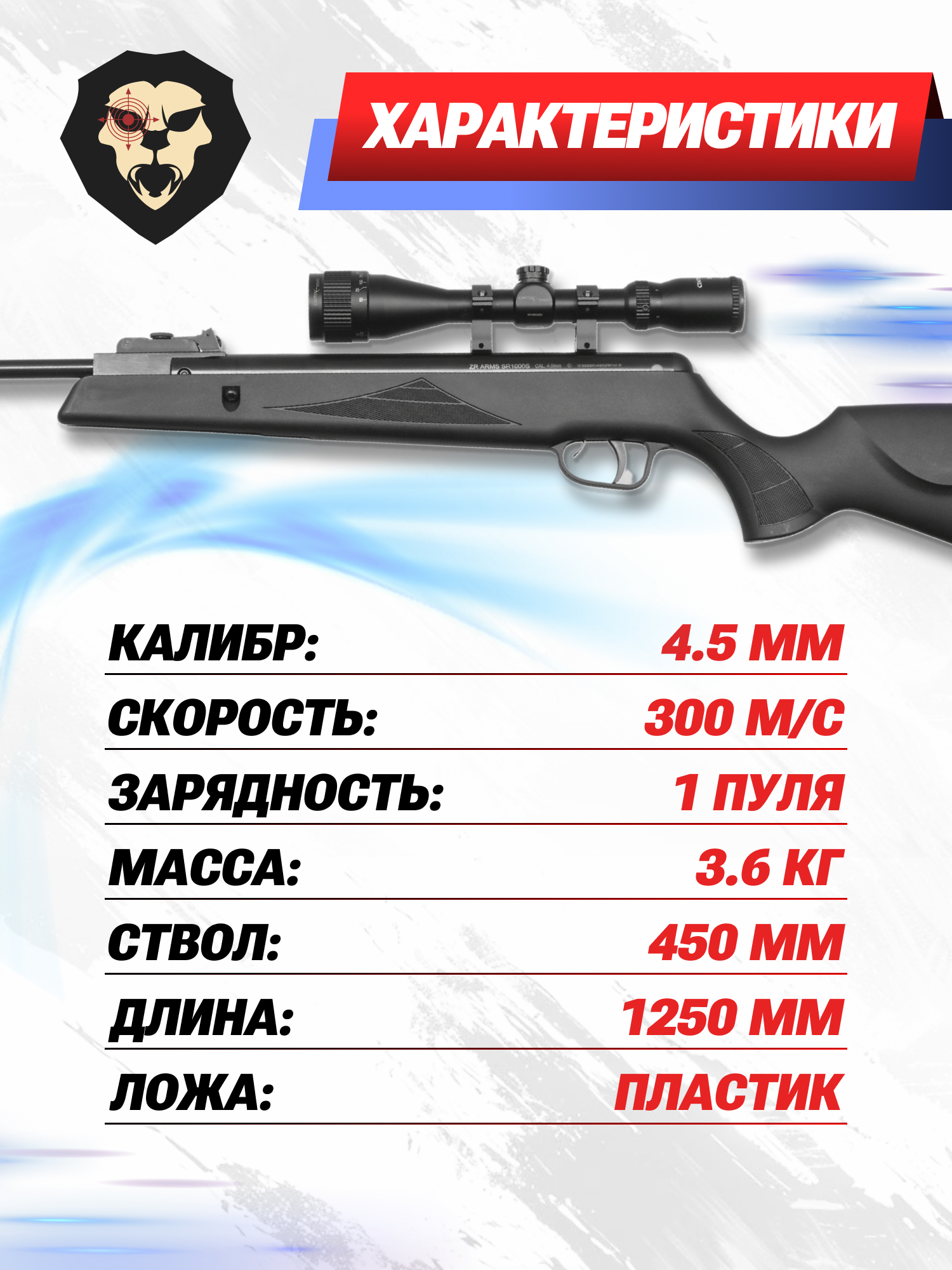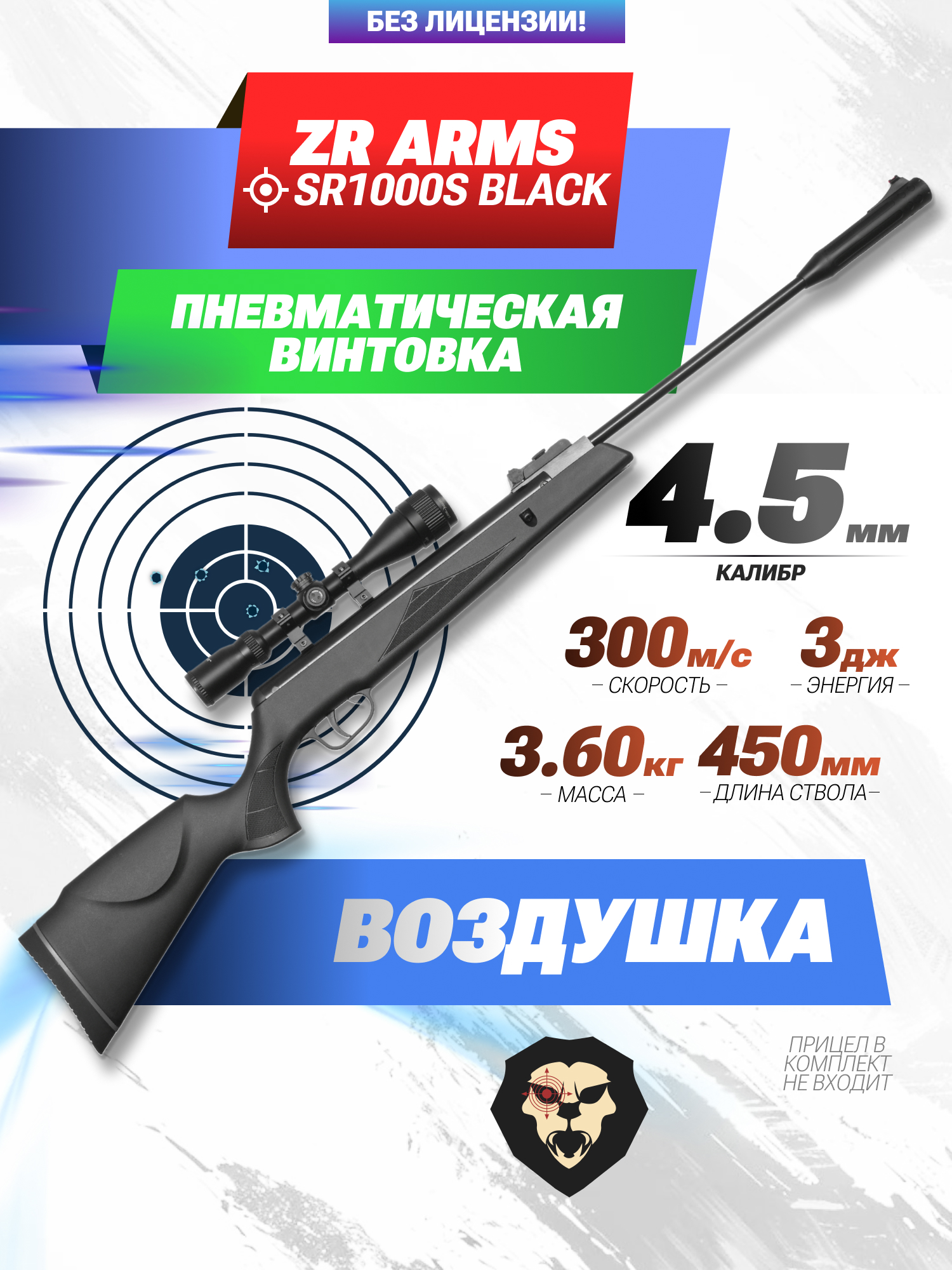 Пневматическая винтовка ZR Arms SR1000S Black 4.5 мм (пластик, черный, переломка) купить в интернет-магазине Popadiv10.