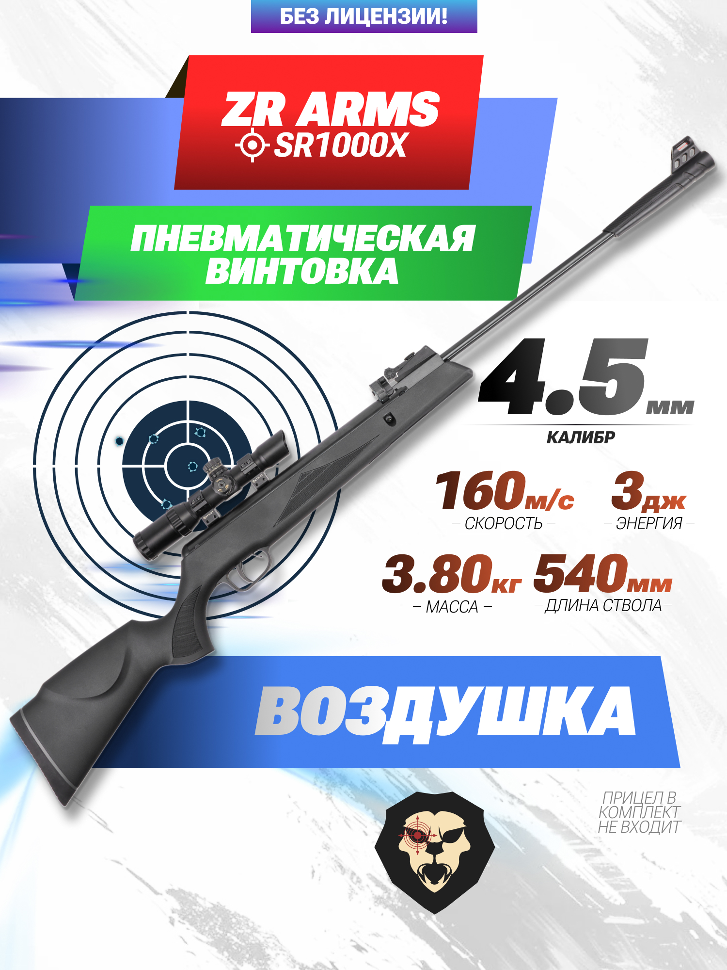 Пневматическая винтовка ZR Arms SR1000X 4.5 мм (3 Дж, переломка, пластик, многозарядная) купить в интернет-магазине Popadiv10.
