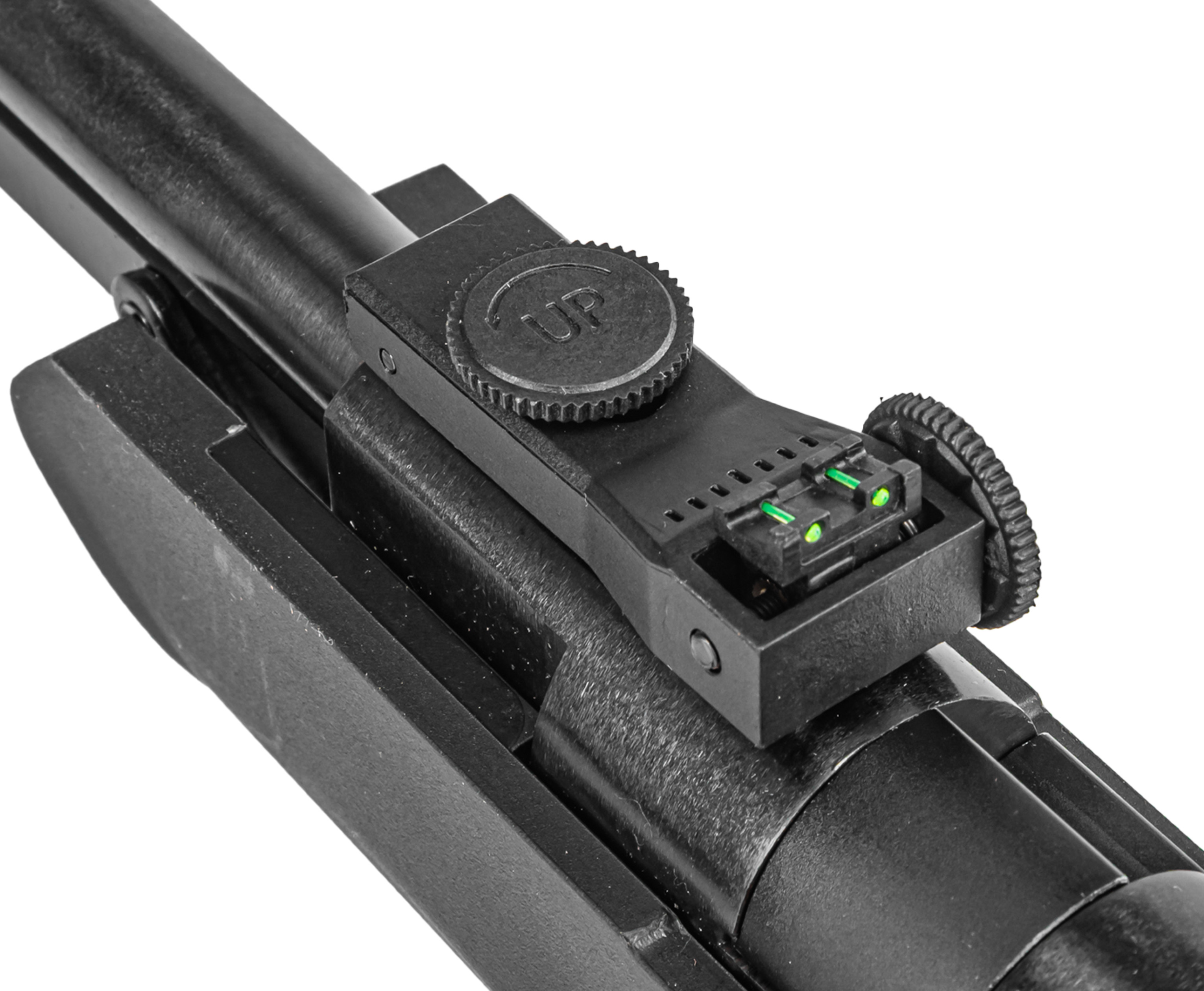 Одним из таких образцов пневматики является обозреваемая винтовка серии SU1200S, относящаяся к категории «воздушек», в которых за разгон пулевого боеприпаса отвечает сжатый поршнем в компрессоре воздух. Принцип действия упомянутого механизма основан на возвратном движении витой металлической пружины, которая взводится при помощи специального подствольного рычага, а в момент нажатия на спусковой крючок высвобождается и стремится вернуться к своему первоначальному состоянию.