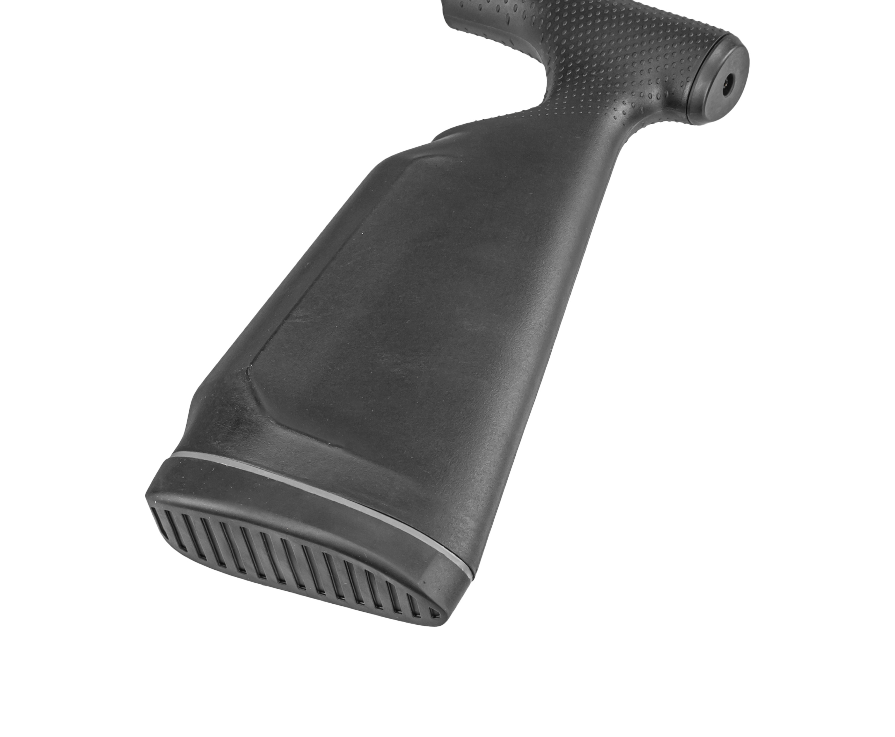 Пневматика с подствольным взводом ZR Arms SU1200S выделяется своим необычным дизайном ложа с прямой рукоятью, которая при этом является частью приклада оружия. Такой формат исполнения дает пользователю сформировать наиболее комфортную вкладку в особенности во время стрельбы с упора и в положении лежа. На удобство удержания также влияет эргономичный приклад с подщечником и наличие рельефной противоскользящей текстуры поверхности.