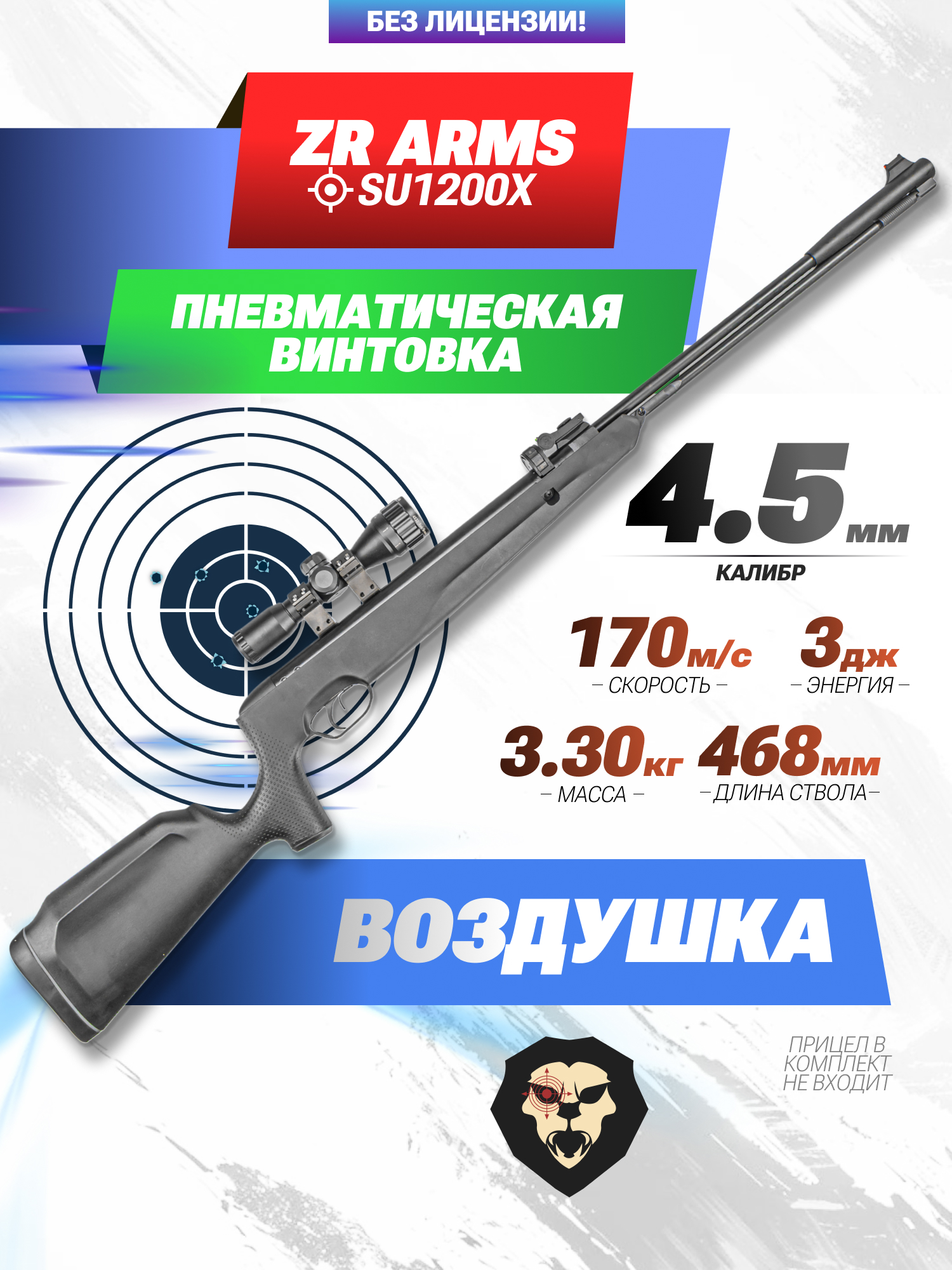 Пневматическая винтовка ZR Arms SU1200X 4.5 мм (пластик, подствольный взвод, переломка) купить в интернет-магазине Popadiv10.