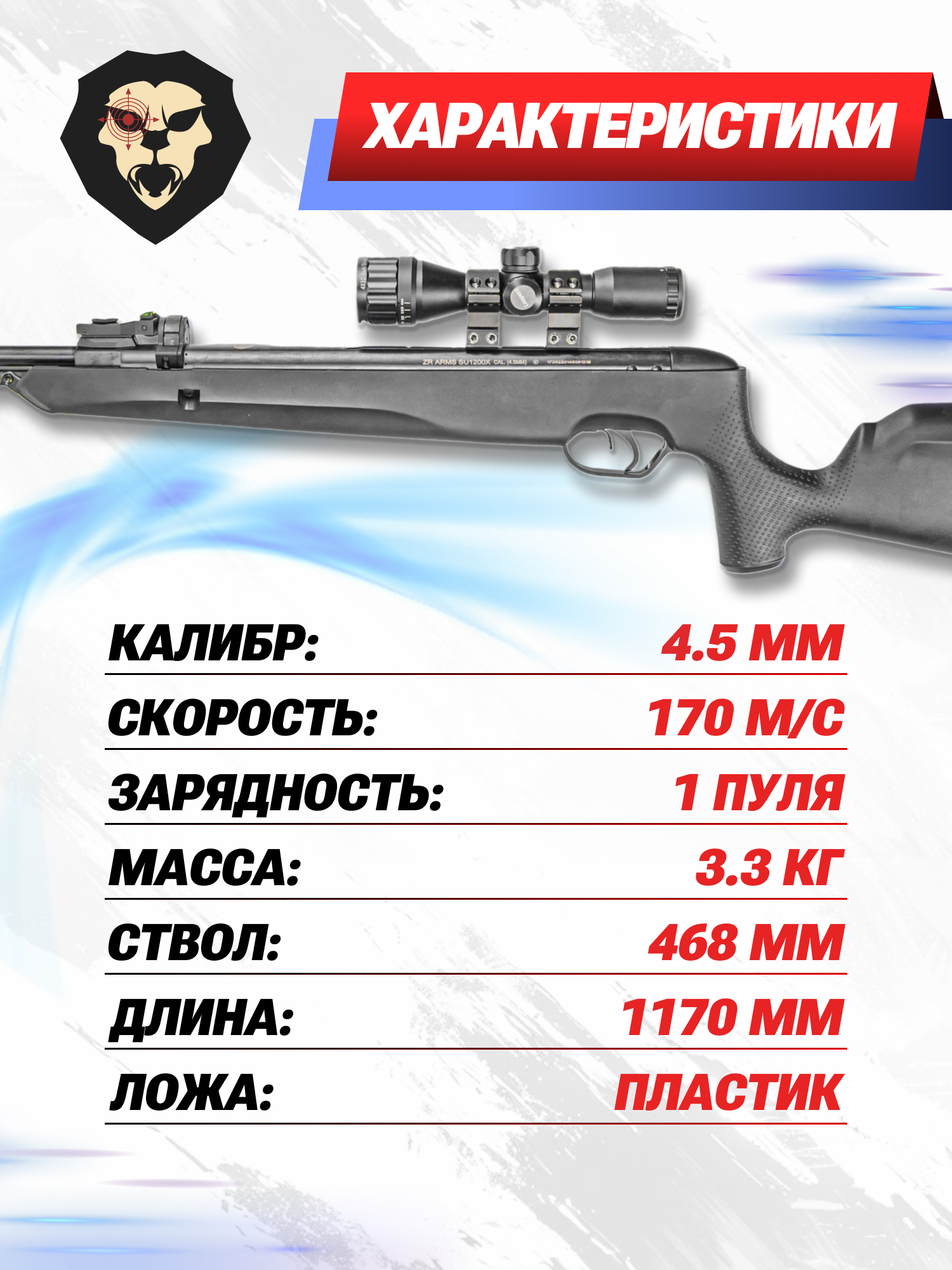 Информация о товаре "Пневматическая винтовка ZR Arms SU1200X 4.5 мм (пластик, подствольный взвод, переломка)" носит ознакомительный характер, и не является публичной офертой, определяемой положениями Статьи 437 Гражданского кодекса Российской Федерации, характеристики, внешний вид, цвет и комплектация могут быть изменены производителем без уведомления.