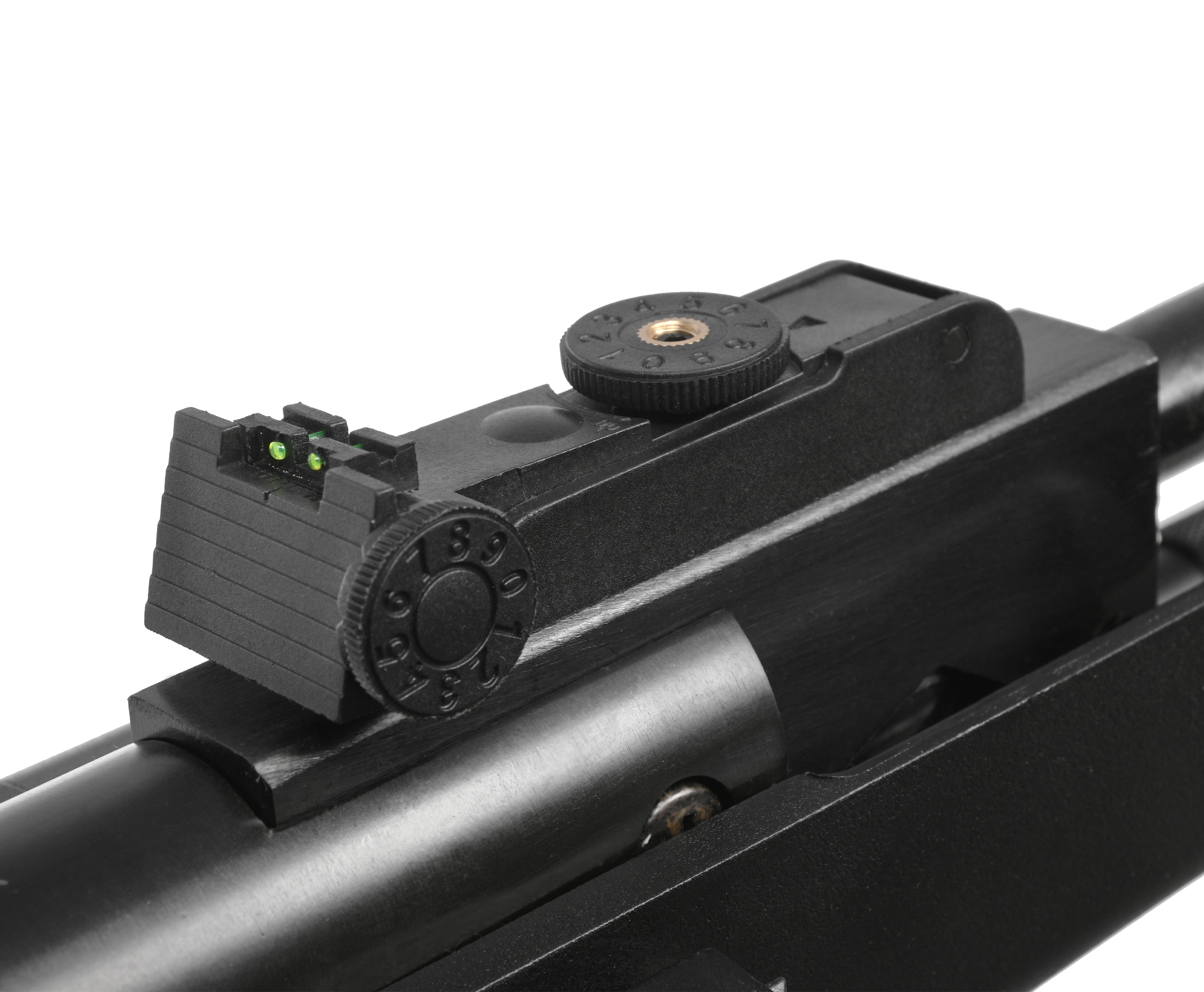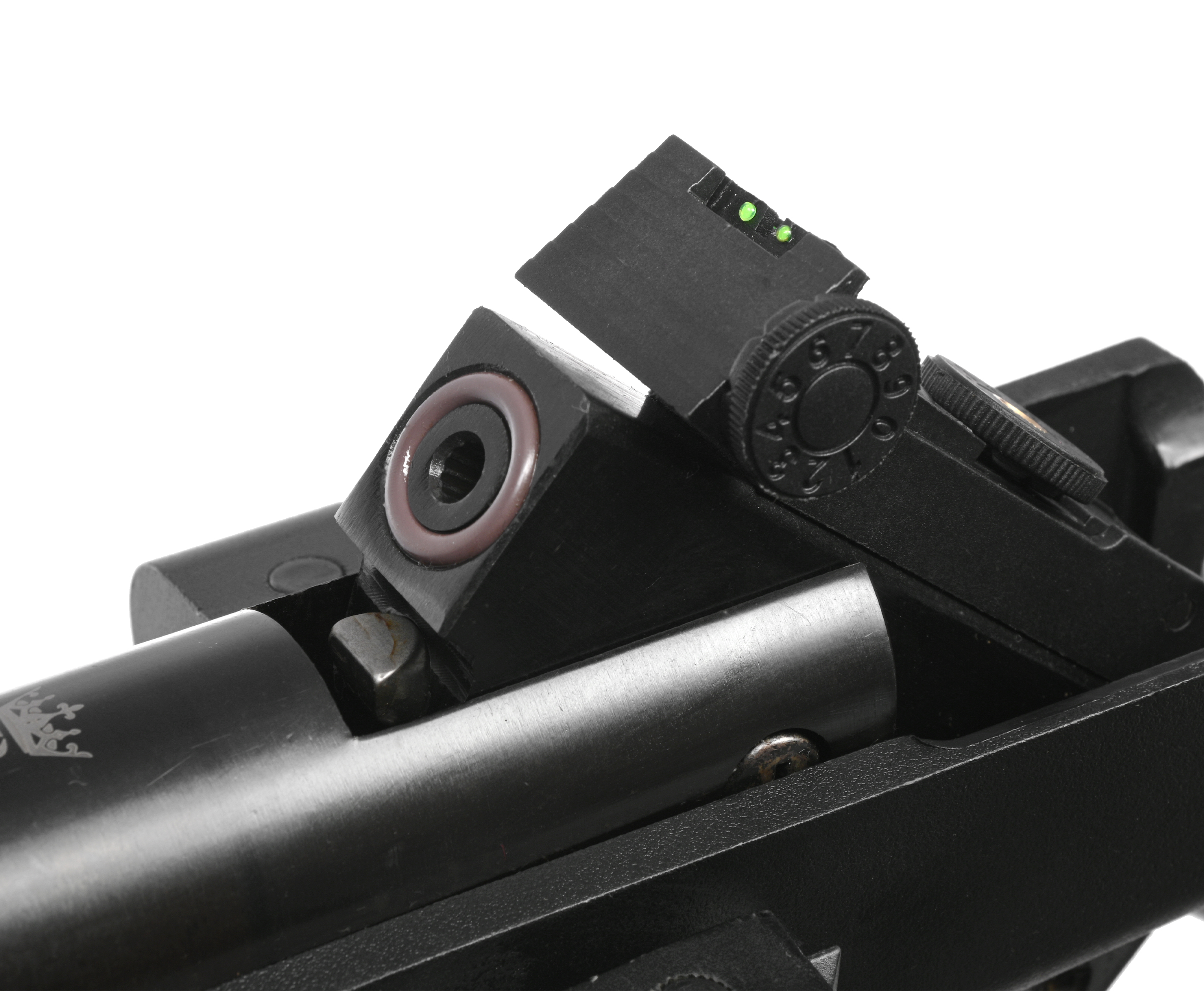 Исходя из особенностей конструкции, пневматические винтовки ZR Arms SU1400F являются однозарядными решениями. Воланчиковая пуля досылается в казенник вручную при смещении ствола - для удобства у дульной части присутствует накладка для хвата второй рукой. Она же совмещается с мушкой, тогда как с противоположной стороны бланка предусмотрен регулируемый целик - помимо механических приспособлений допускается установка оптики при помощи колец на планку «Ласточкин хвост».