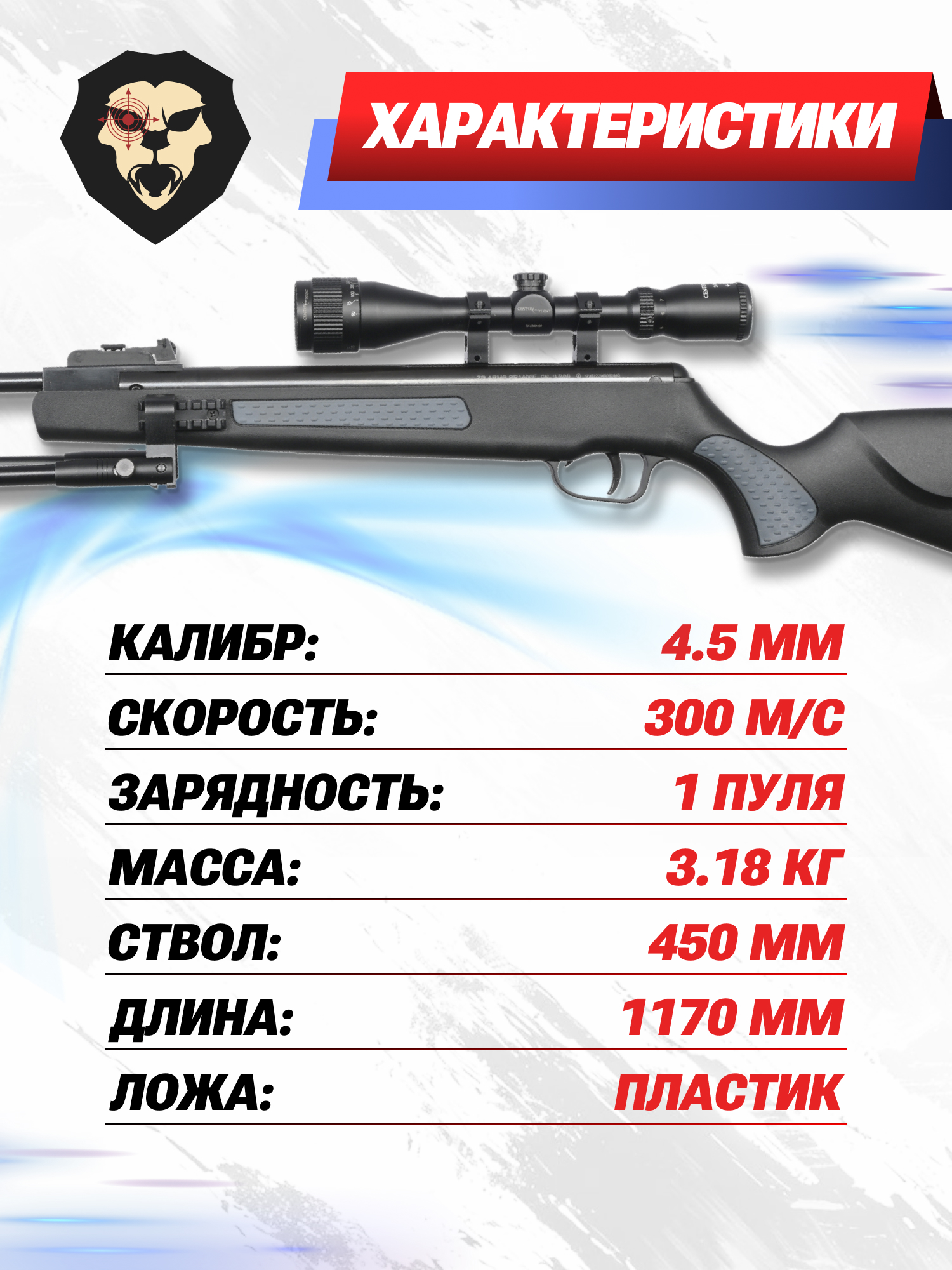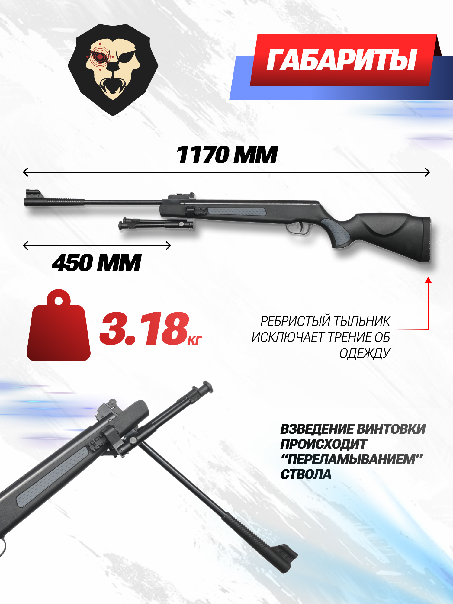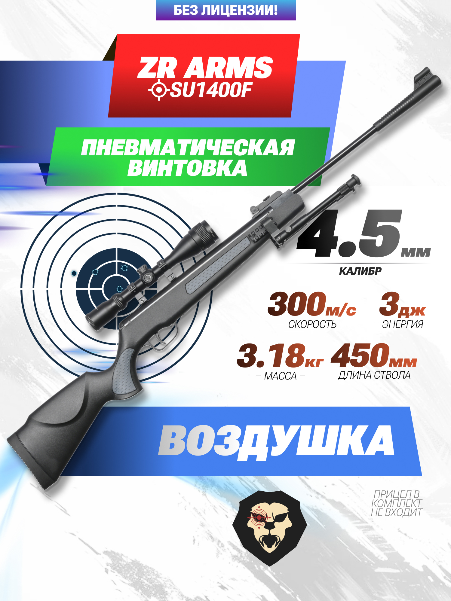 Пневматическая винтовка ZR Arms SU1400F 4.5 мм (3 Дж, пластик, переломка, сошки) купить в интернет-магазине Popadiv10.