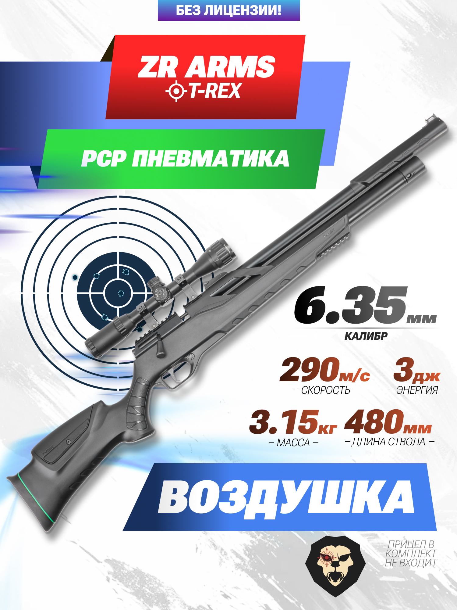 Пневматическая винтовка ZR Arms T-Rex 6.35 мм (ПСП, карабин, пластик) купить в интернет-магазине Popadiv10.